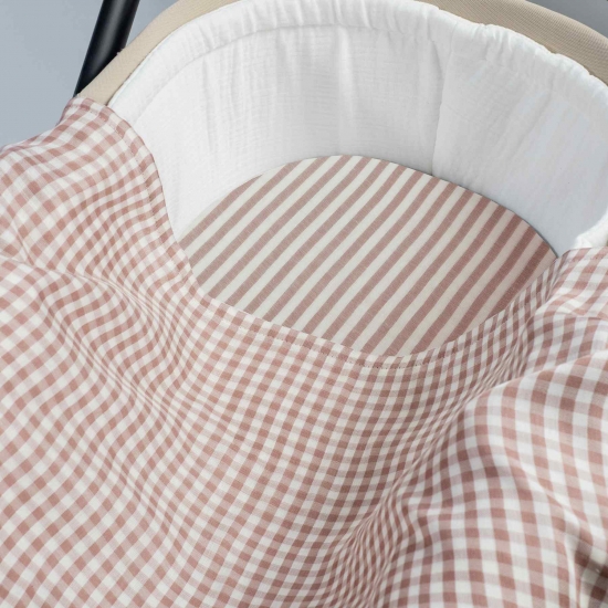 Funda colchón cuco Vichy+muselina Praliné rayas moka