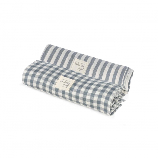 Set de 2 muselinas 70×70 Praliné Vichy/Rayas moka