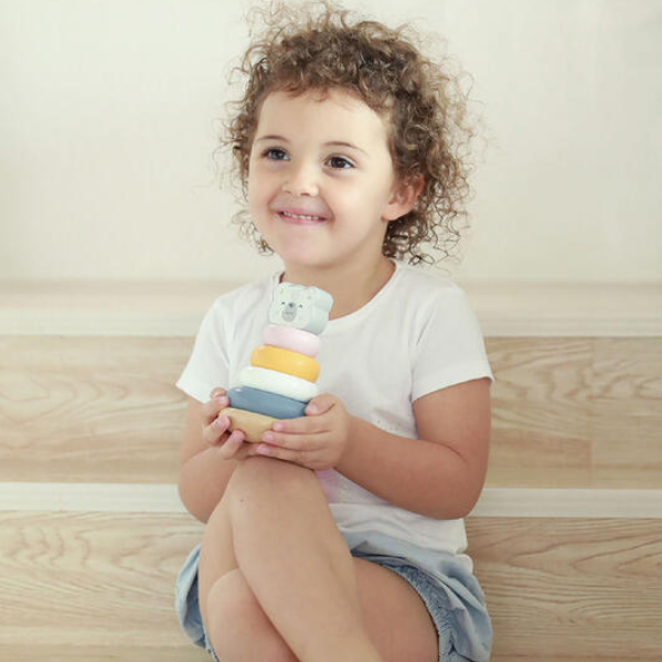 Los juguetes apilabes están diseñados con aros de colores de diferentes tamaños perfectos para estimular la capacidad lógica y la coordinación mano-ojo del bebé.