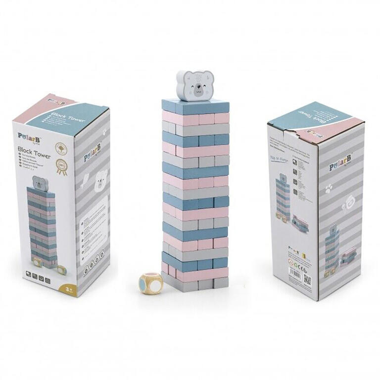 El juego consiste en contruir una torre con todos ellos y después, por turnos, cada jugador debe quitar con mucho cuidado una de las fichas de los pisos inferiores siguiendo el color indicado por el dado.