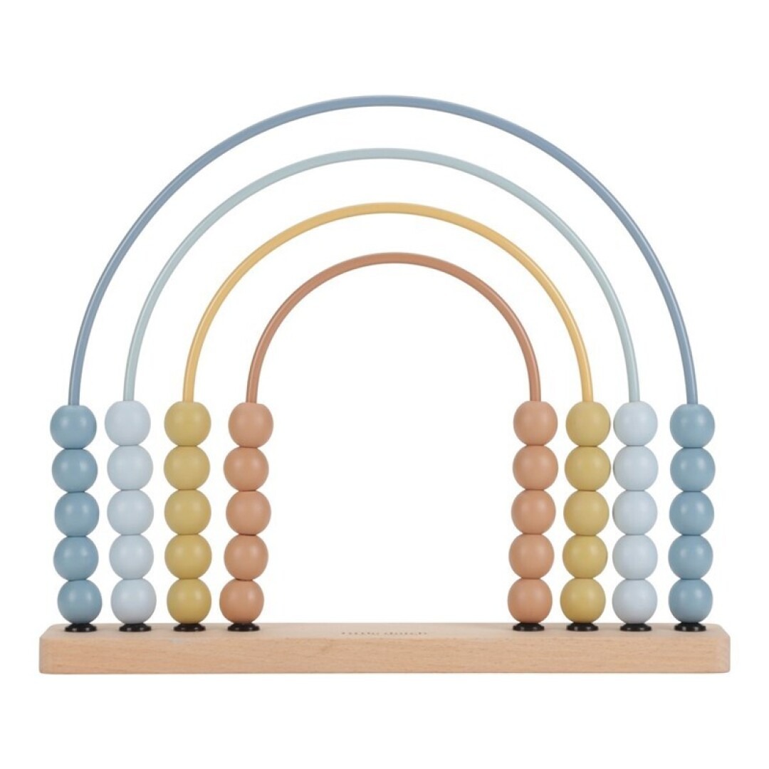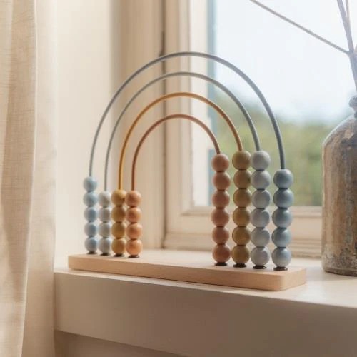 Aprende a contar del 1 al 10 usando todos los colores del arcoíris. Este  ábaco en forma de arcoíris, es una manera entretenida de practicar los números. Mueve las cuentas de colores de un lado al otro y descubre los distintos matices de rosa, amarillo y verde. Mientras tu pequeño se divierte y adquiere nociones básicas de conteo, también mejora su destreza manual. Los niños más grandes pueden usar el ábaco para resolver ejercicios de matemáticas y practicar el conteo. Es una opción ideal para combinar juego y aprendizaje.