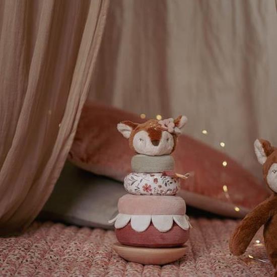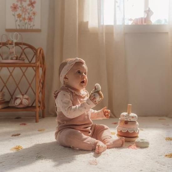 Anillos apilables blanditos de la colección Fairy garden. Animará a los peques, a colocar los anillos de madera y tela en el orden correcto y apilarlos en la pirámide tambaleante. Un desafío de lo más divertido.