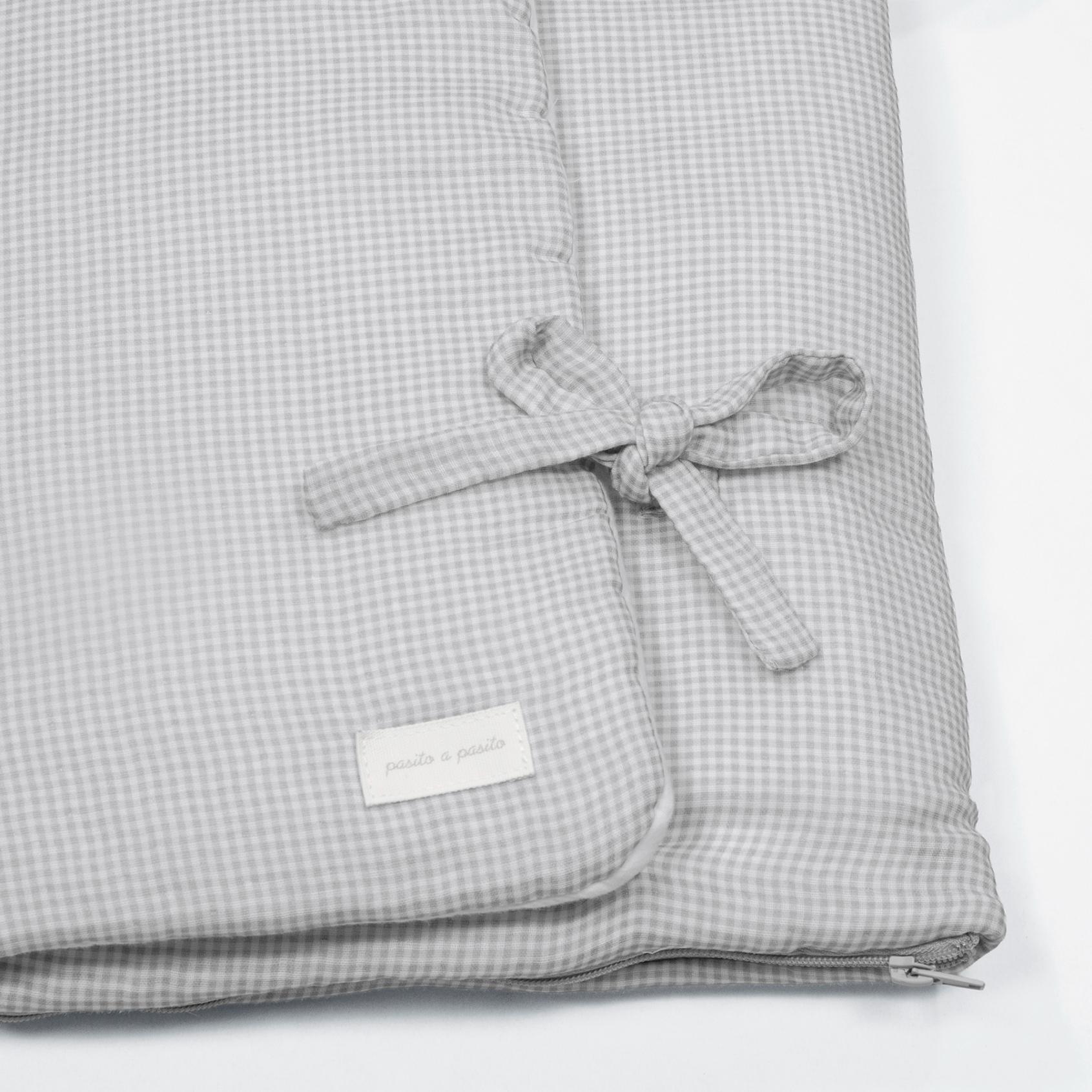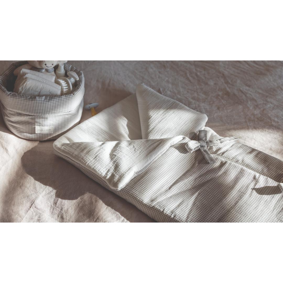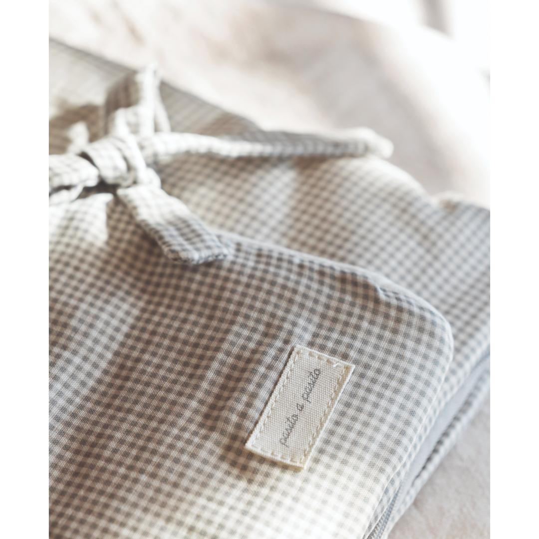 u delicado estampado de cuadros vichy en color gris aporta un toque clásico y elegante, ideal tanto para usar en la cuna como para mantener al pequeño protegido y confortable durante los paseos en el cochecito.
