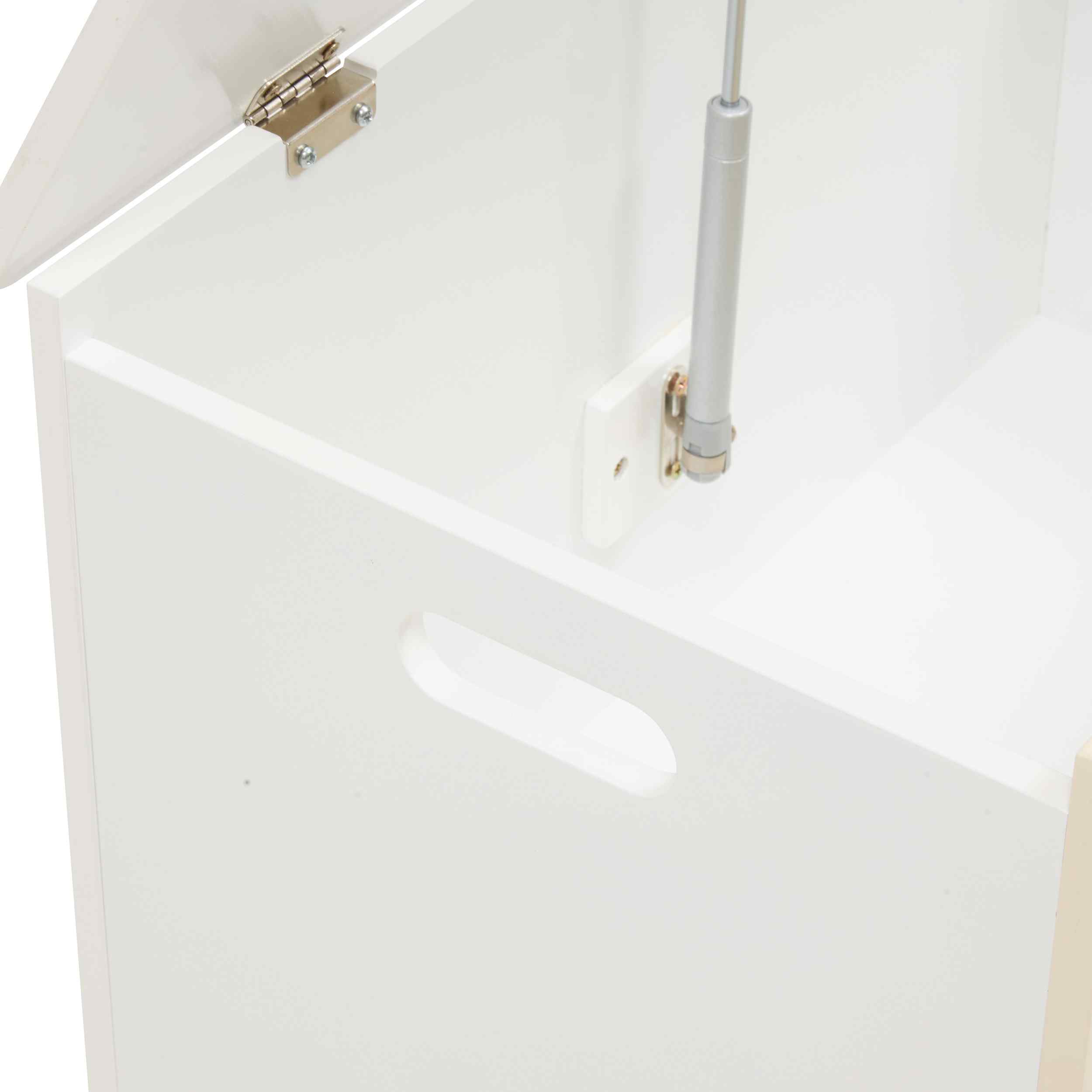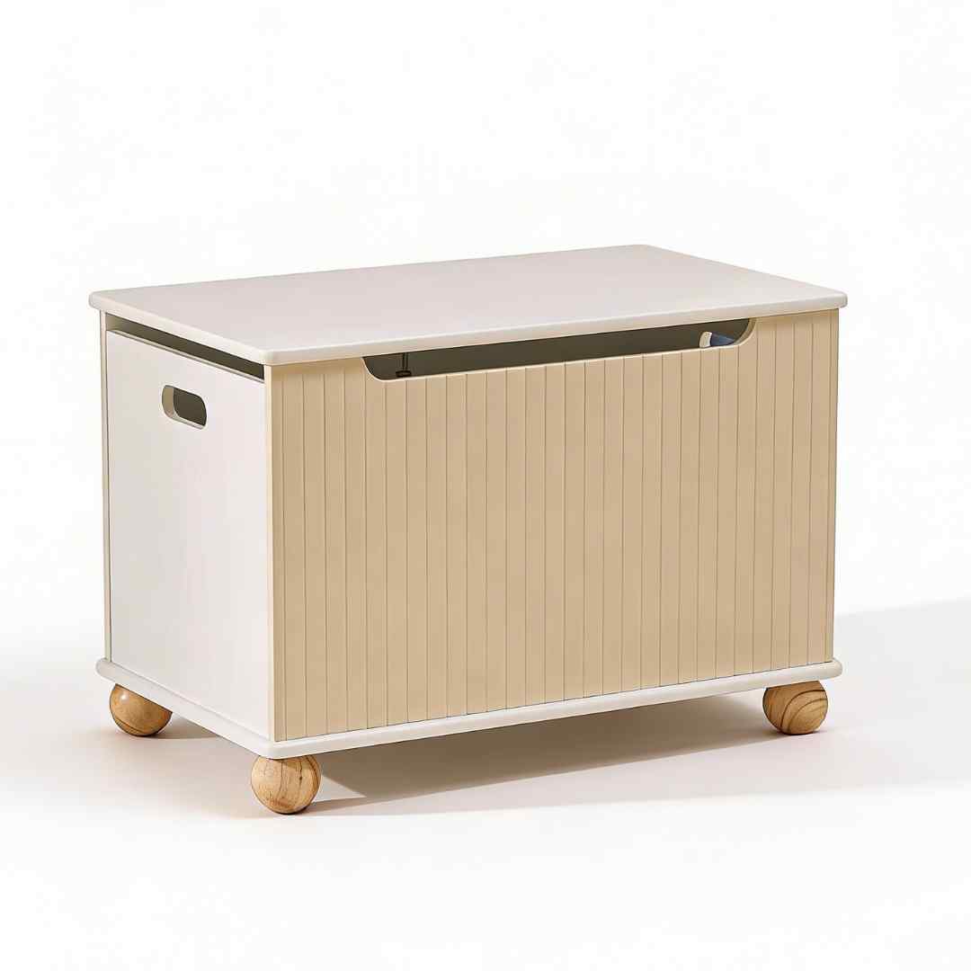 Su tapa sólida y plana no solo ofrece un amplio espacio de almacenaje para juguetes, libros, peluches o mantas, sino que también puede servir como superficie auxiliar para apoyar objetos decorativos.