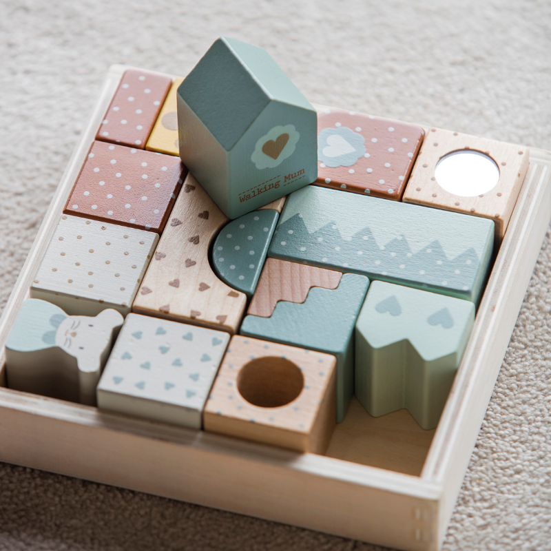 Descubre el encantador y educativo juego de arquitectura de madera Poppy de Walking Mum, ideal para bebés y niños pequeños.