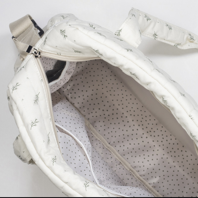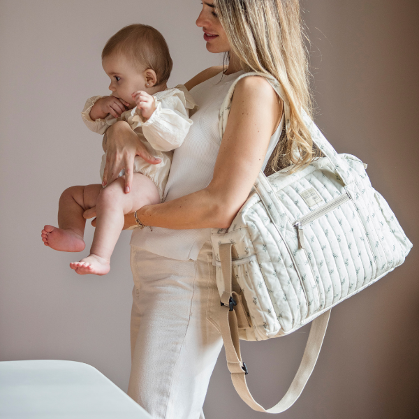 Bolso cambiador Mimosa con estampado floral.