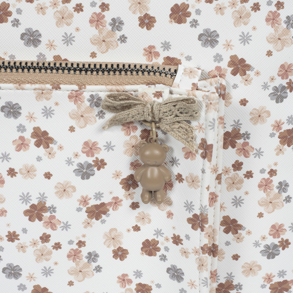 La bolsa canastilla para carrito de bebé o el bolso para silla de paseo, está confeccionada en polipiel con estampado floral. Tiene un diseño muy elegante y práctico con una gran capacidad para llevar todo lo que necesita tu bebé a la hora de salir de casa. Dispone de bolsillos interiores para poder colocar de forma ordenada el biberón, cubiertos, pañales o productos de aseo. Además entre los bolsillos uno de ellos es térmico para guardar el biberón y otro está plastificado para guardar prendas húmedas o mojadas.