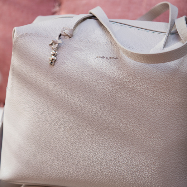 Bolsa XL confeccionada en polipiel en color gris. Destaca por su diseño moderno y espacioso. Dispone una gran capacidad, e incluye múltiples bolsillos, para poder tener todos los accesorios de tu bebé bien ordenados. Cuenta con una doble asa superior para llevarla cómodamente en la mano y una correa ajustable y desmontable, para llevarla al hombro o cruzada.