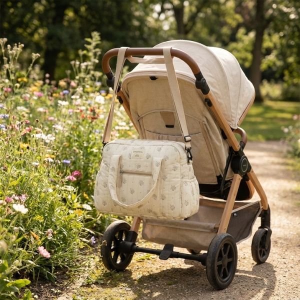 • Versatilidad: Se puede llevar como bolso de mano, bandolera o colgado del cochecito gracias a sus asas ajustables.