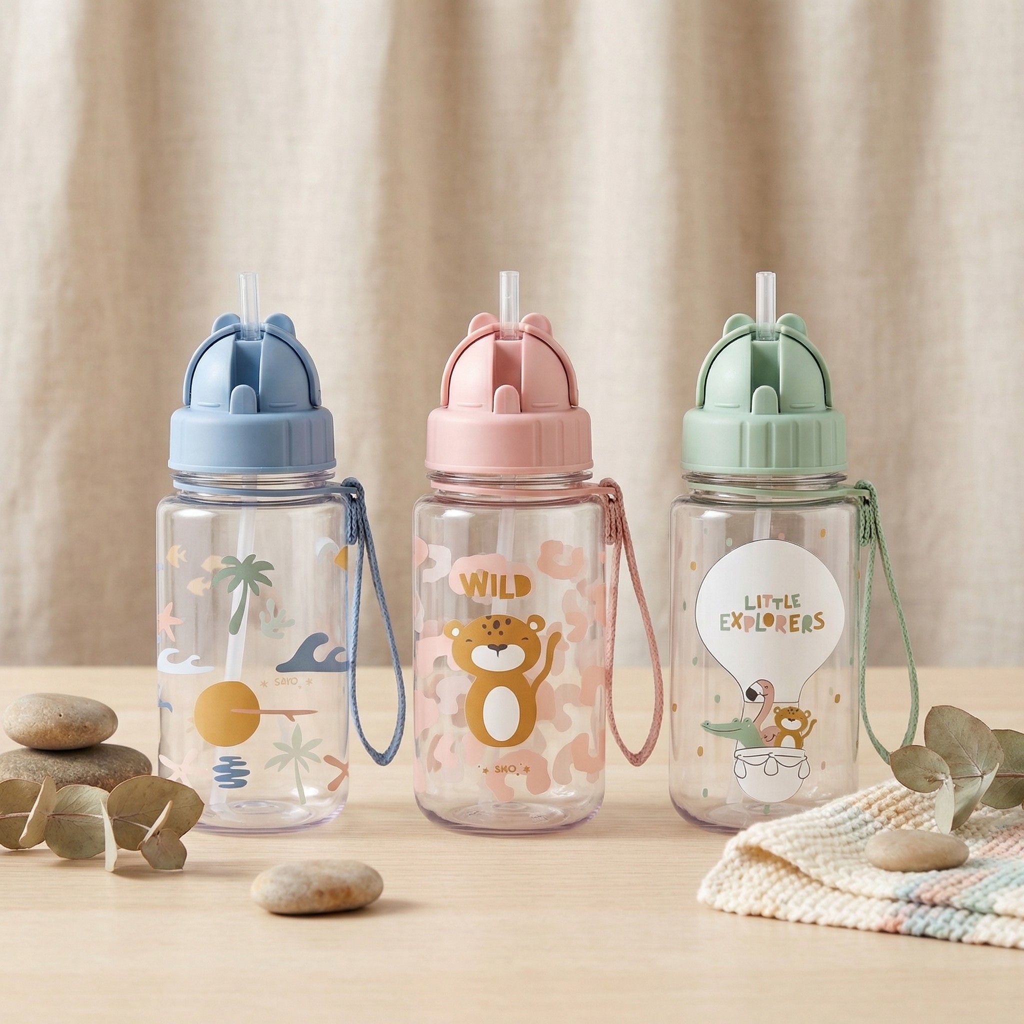 VERANOBotellas infantiles Botella con pajita y colgador Wild