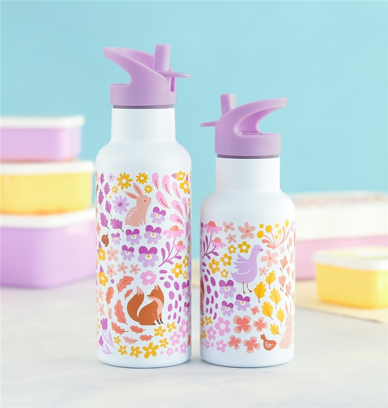 VERANOBotellas infantiles Botella de acero térmica 350ml. Flores