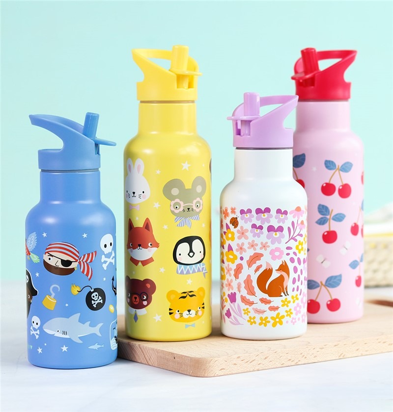 Esta botella ligera de acero inoxidable es perfecta para llevar a la escuela y mantener las bebidas frías durante más tiempo gracias a su doble pared aislante.