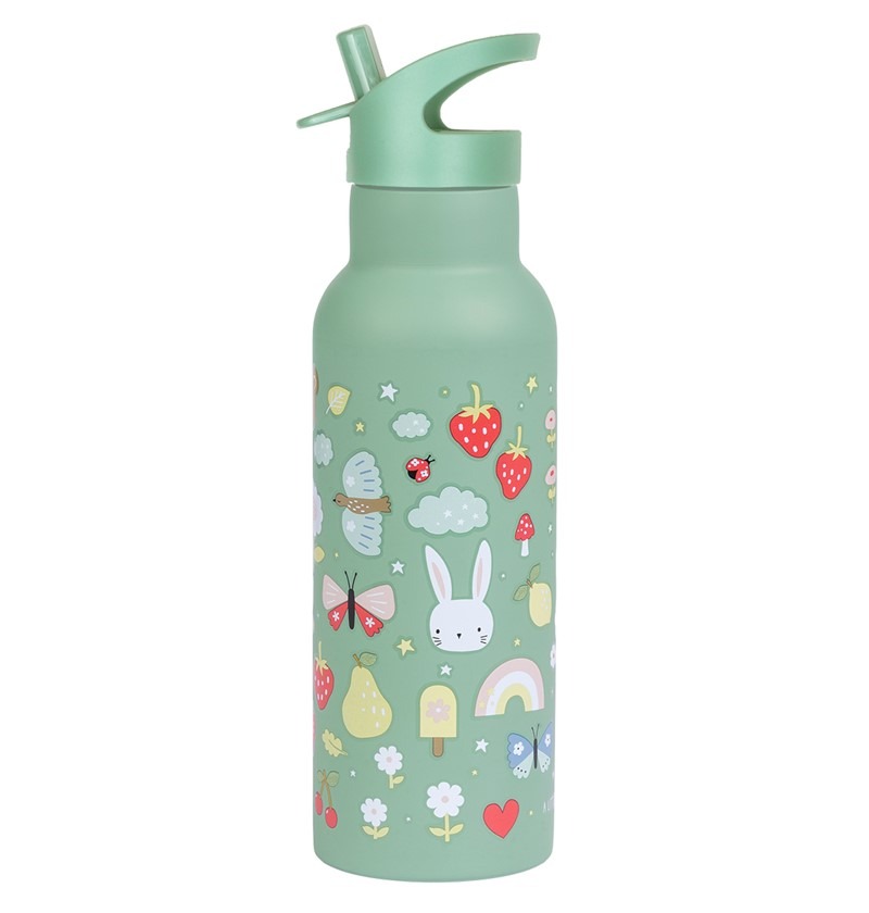 Esta botella ligera de acero inoxidable es perfecta para llevar a la escuela y mantener las bebidas frías durante más tiempo gracias a su doble pared aislante.