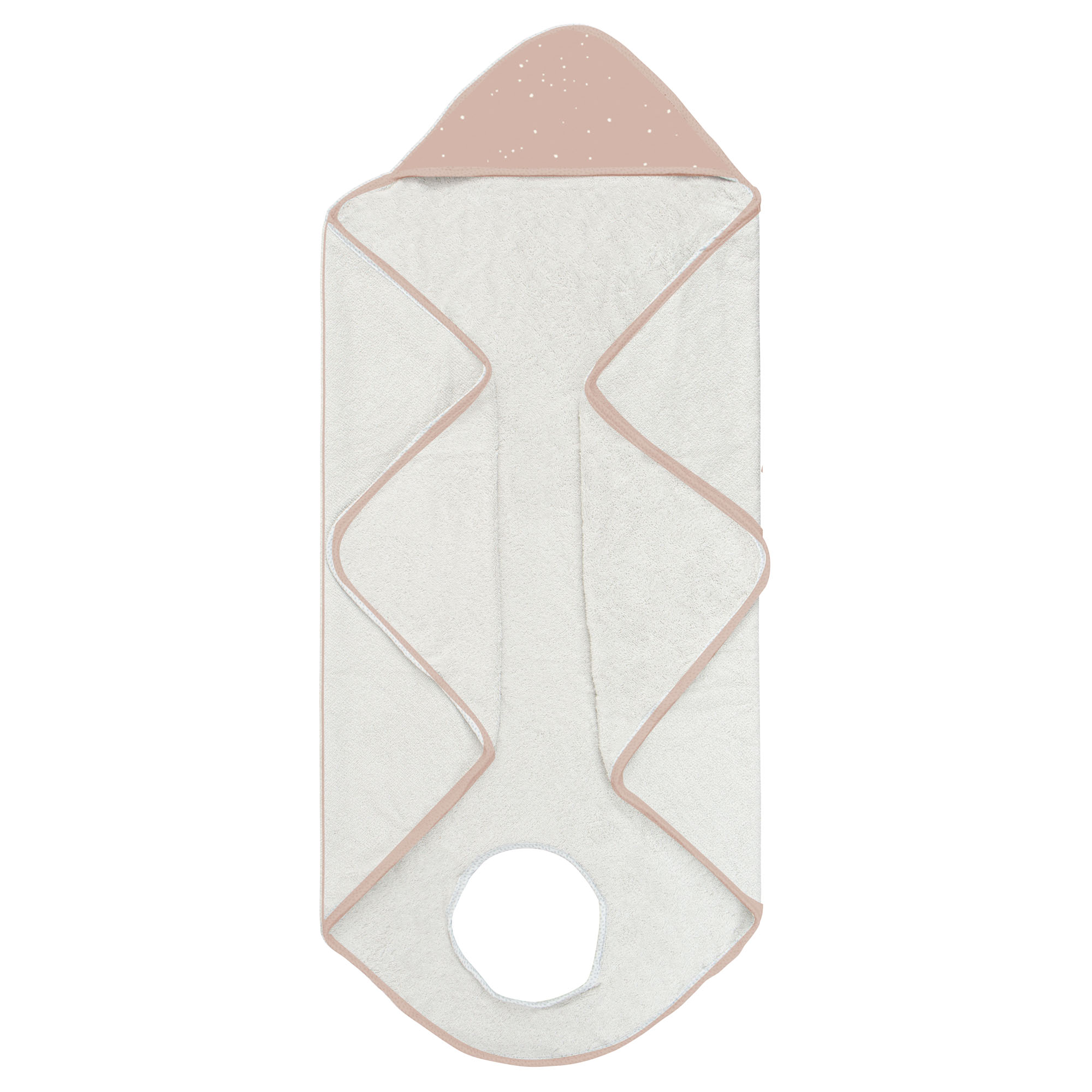 Capa de baño confeccionado en tejido suave, que cuenta con un orifico en un extremo para que puedas colocártela mientras secas a tu bebé después del baño.