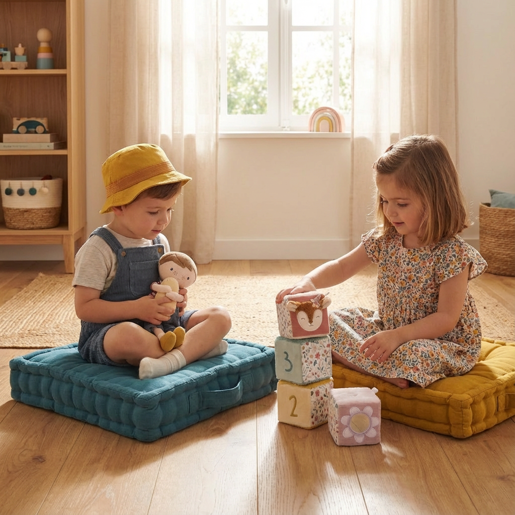 DECORACIÓNCojines Decorativos Cojín de suelo infantil mostaza 40x40cm