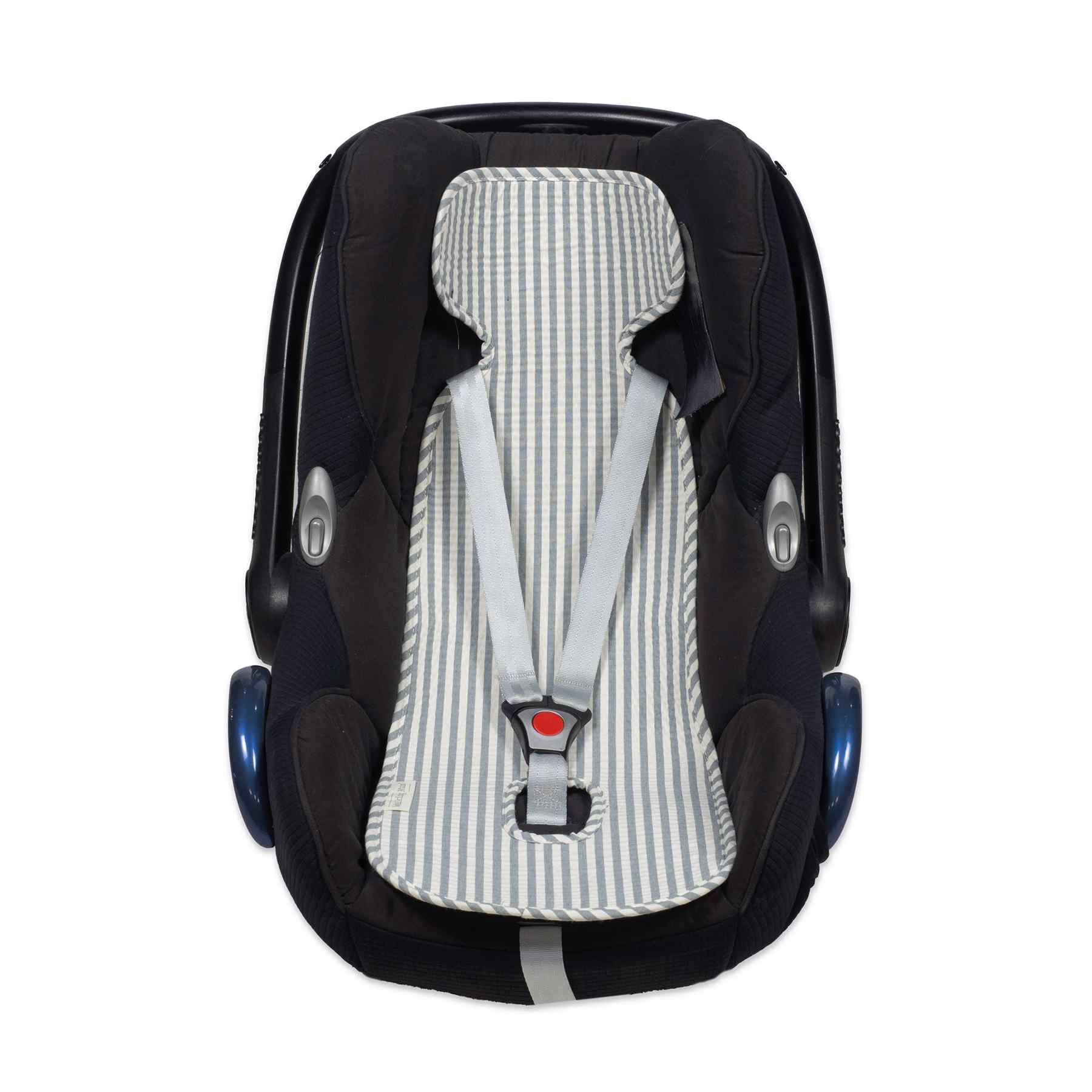La colchoneta para silla de auto, está diseñada para aportar confort, frescura y protección al bebé durante los trayectos en coche. Es universal, compatible con sillas de auto Grupo 0 / 0+ y Grupo 1, lo que equivale a sillas i-Size de 40 a 105 cm de altura del bebé. Se adapta fácilmente a la mayoría de los modelos del mercado sin interferir con los sistemas de seguridad. Está confeccionada en una resistente mezcla de algodón y poliéster, e incorpora una rejilla trasera transpirable que favorece la circulación del aire, ayudando a reducir la sudoración y mejorando el bienestar del bebé durante el viaje.