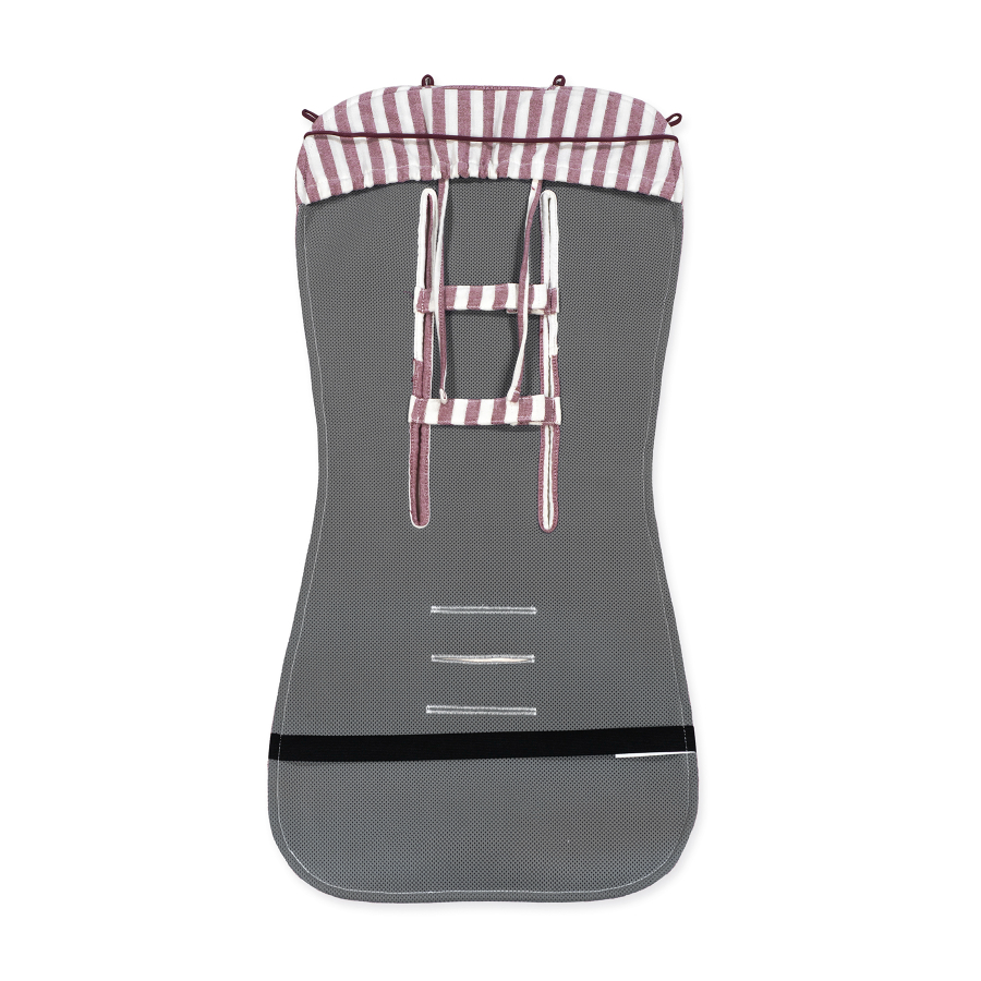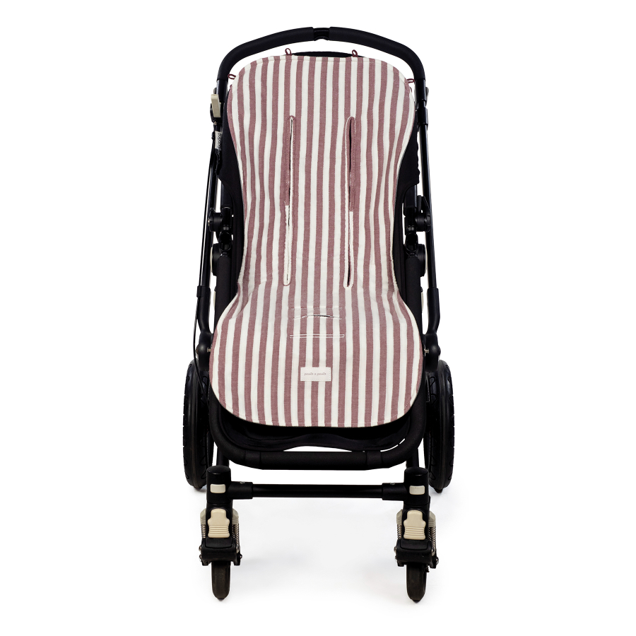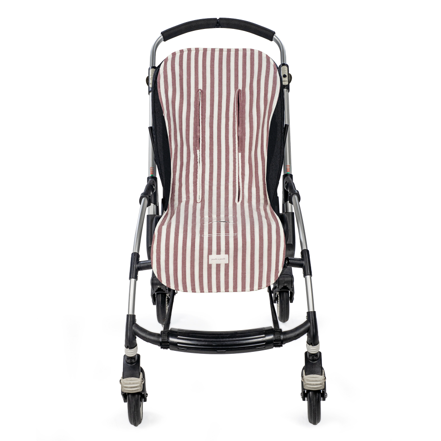 La colchoneta Cherry de Pasito a Pasito está confeccionada en tejido de algodón 100% con un delicado estampado de rayas, ideal para aportar mayor comodidad al bebé durante los paseos en días calurosos.