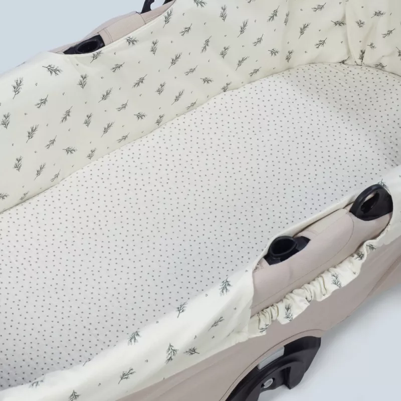 El Cubre Cuco Mimosa con gomas y sábana bajera ajustable de Walking Mum es un accesorio ideal para decorar y proteger el capazo de tu bebé con estilo y comodidad.