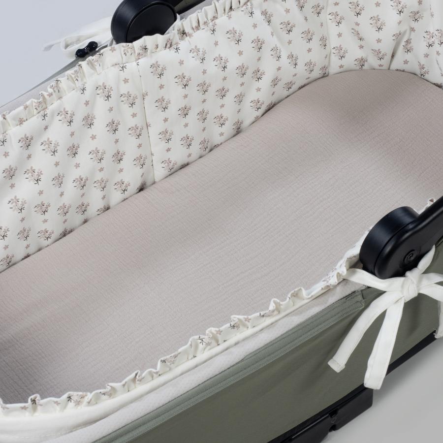 Fabricado en algodón 100%, este conjunto combina suavidad, transpirabilidad y un diseño funcional que se adapta perfectamente a la mayoría de los capazos.