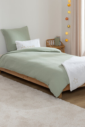 Material: Confeccionado en gasa de algodón de alta calidad, este set garantiza una textura suave y agradable al tacto, proporcionando un confort óptimo durante el sueño.