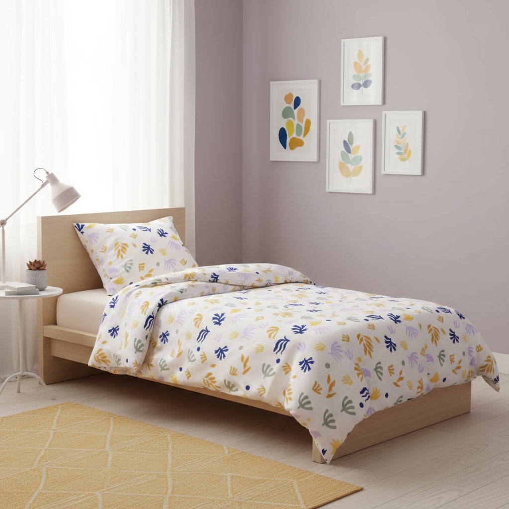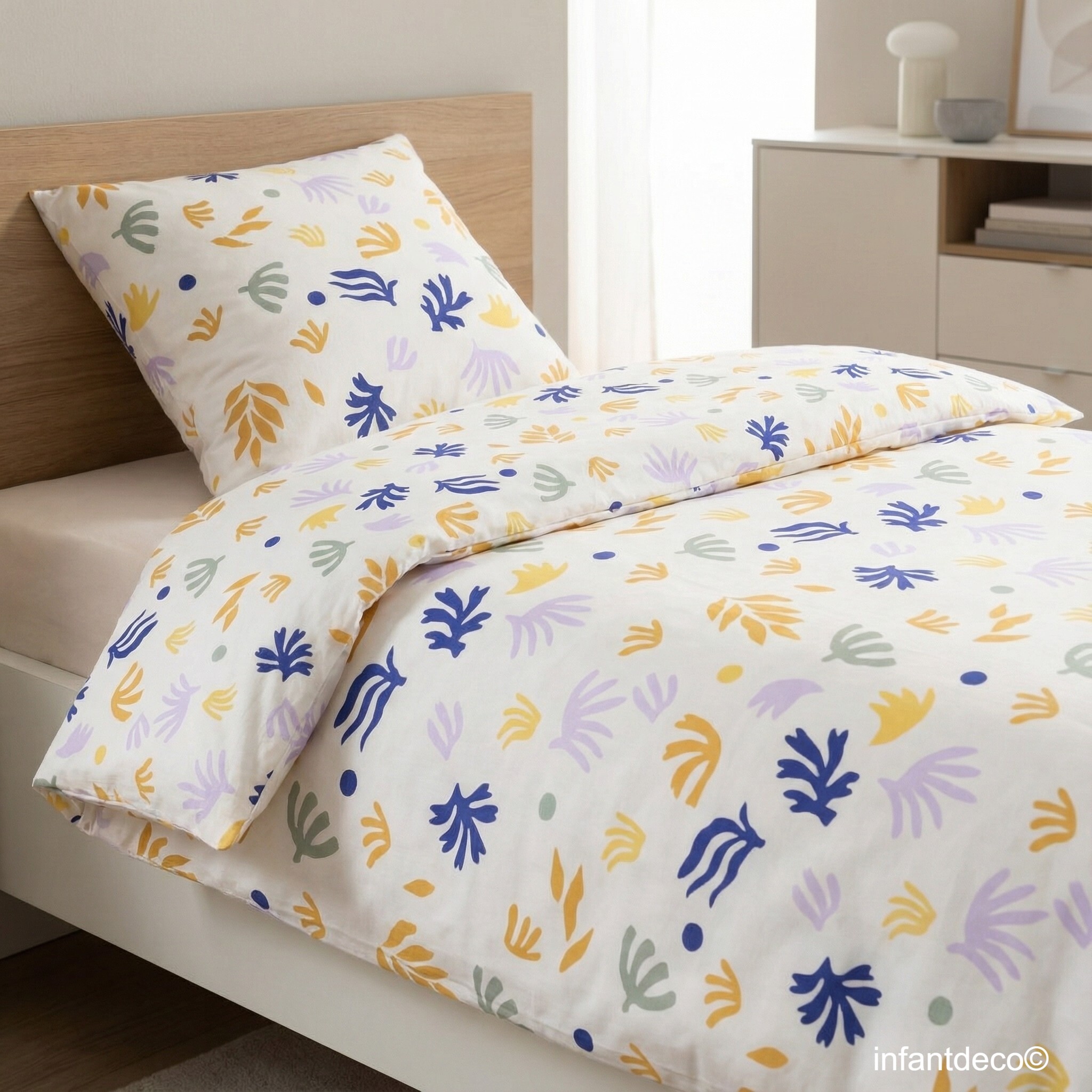 Dimensiones: La funda mide 140 x 200 cm, adecuada para camas individuales, y la funda de almohada mide 65 x 65 cm, adaptándose a almohadas estándar. Apto para colchón de 80 y 90cm.