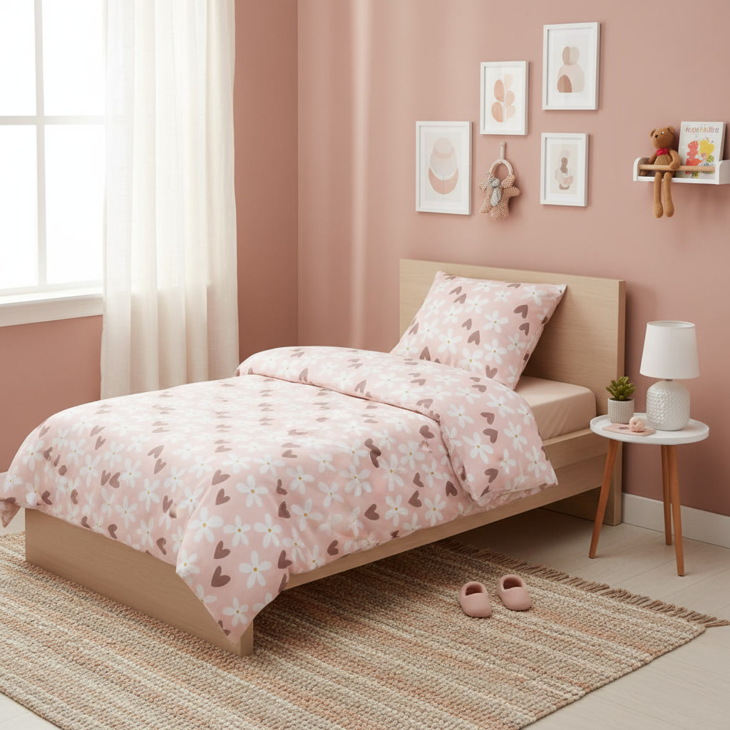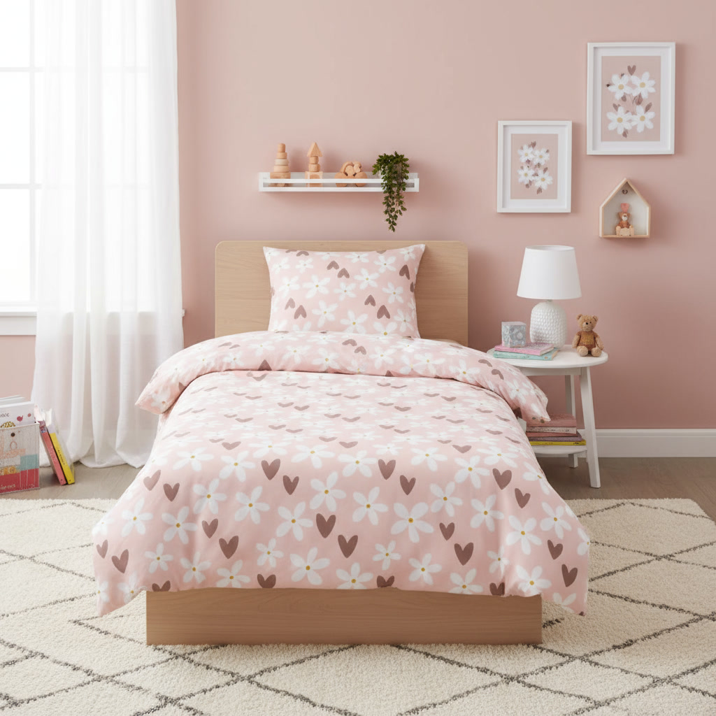 Funda nórdica infantil de cama Hearts and Flowers