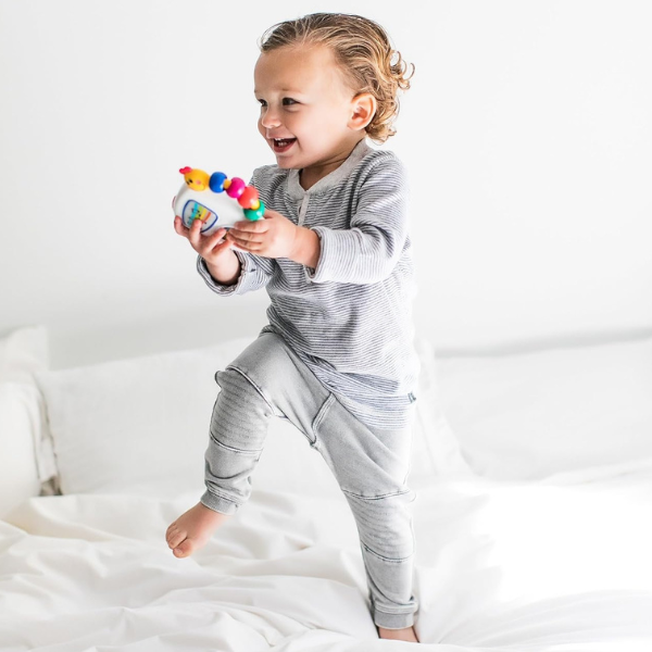 Este juguete musical, presenta una selección de siete melodías clásicas, adaptadas especialmente para los oídos de los más pequeños. Con botones grandes y de fácil presión, activa la reproducción de obras maestras de renombrados compositores como Chopin y Mozart, garantizando un sonido de alta calidad. Además, cada melodía se acompaña de un divertido juego de luces que iluminan la pantalla con colores vibrantes, sincronizándose con el ritmo de la música. Cuenta con un cómodo mango en forma de oruga, de fácil agarre para las manitas de tu bebé.