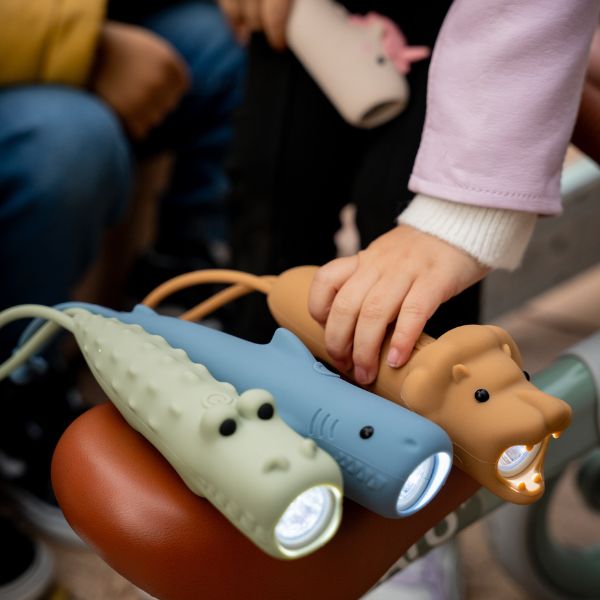 Esta linterna tan molona será la compañera de aventuras perfecta para tu peque: explorar al aire libre, una acampada, contar cuentos antes de acostarse o hacer juegos de sombras. Fomentando la autonomía, el juego libre y la imaginación de tu peque. Diseñada con forma de cocodrilo y fabricada en suave silicona, es tan divertida como práctica. Dispone de un práctico colgador flexible, perfecto para llevarla colgada de la mano o de la mochila. Su uso es sencillo e intuitivo: