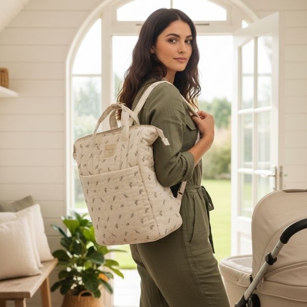 Canastilla y mochila al mismo tiempo, modelo urbano y moderno de gran capacidad para tus cosas y las de tu bebé. Incluye bolsillos para poder guardar los biberones y mantenerlos seguros, elásticos para colocar cubiertos, para las toallitas húmedas, y también tiene un bolsillo térmico para guardar el biberón.