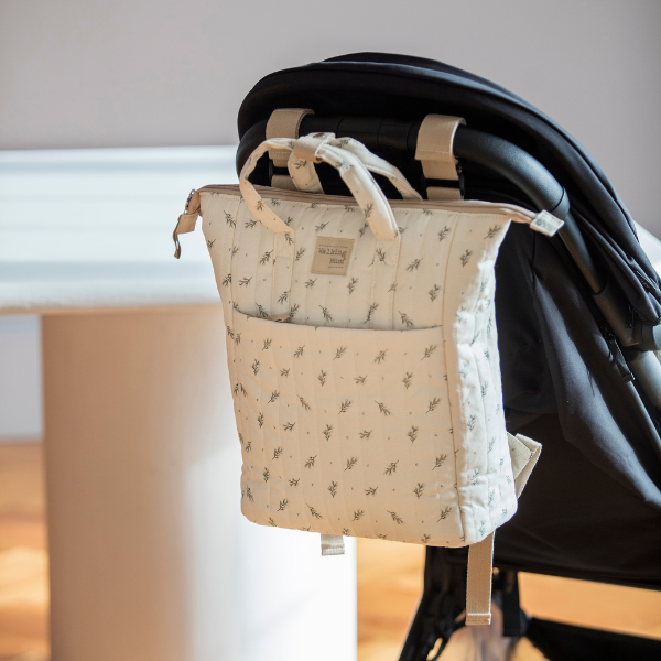 - Incluye asas para colgar en el cochecito y asas de mano, correas acolchadas para hombros.