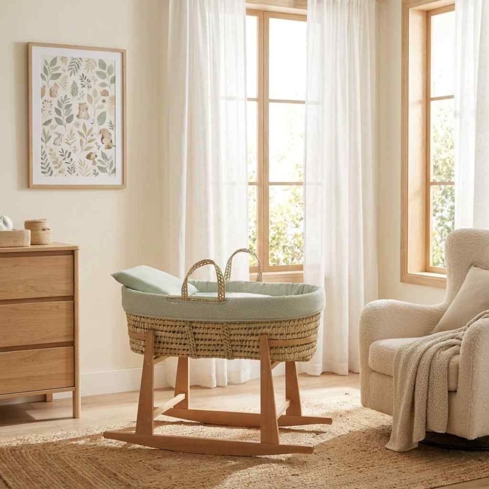 El moisés de palma acolchado de Cambrass es una opción excepcional para los primeros meses de vida de tu bebé, ofreciendo un entorno de descanso seguro, cómodo y con un encanto natural.