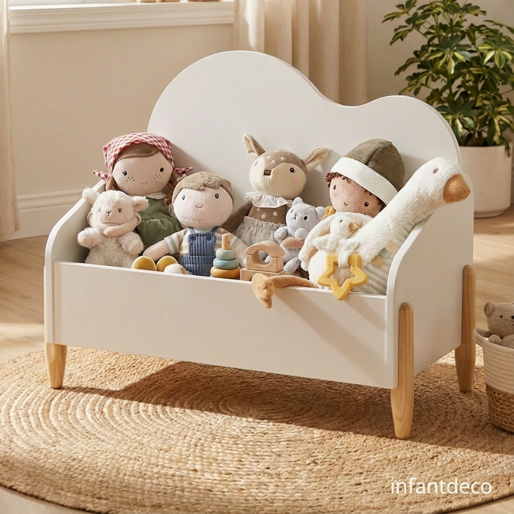 A la altura de los niños, este baúl facilita que puedan guardar sus juguetes de forma autónoma y mantener la habitación ordenada.
