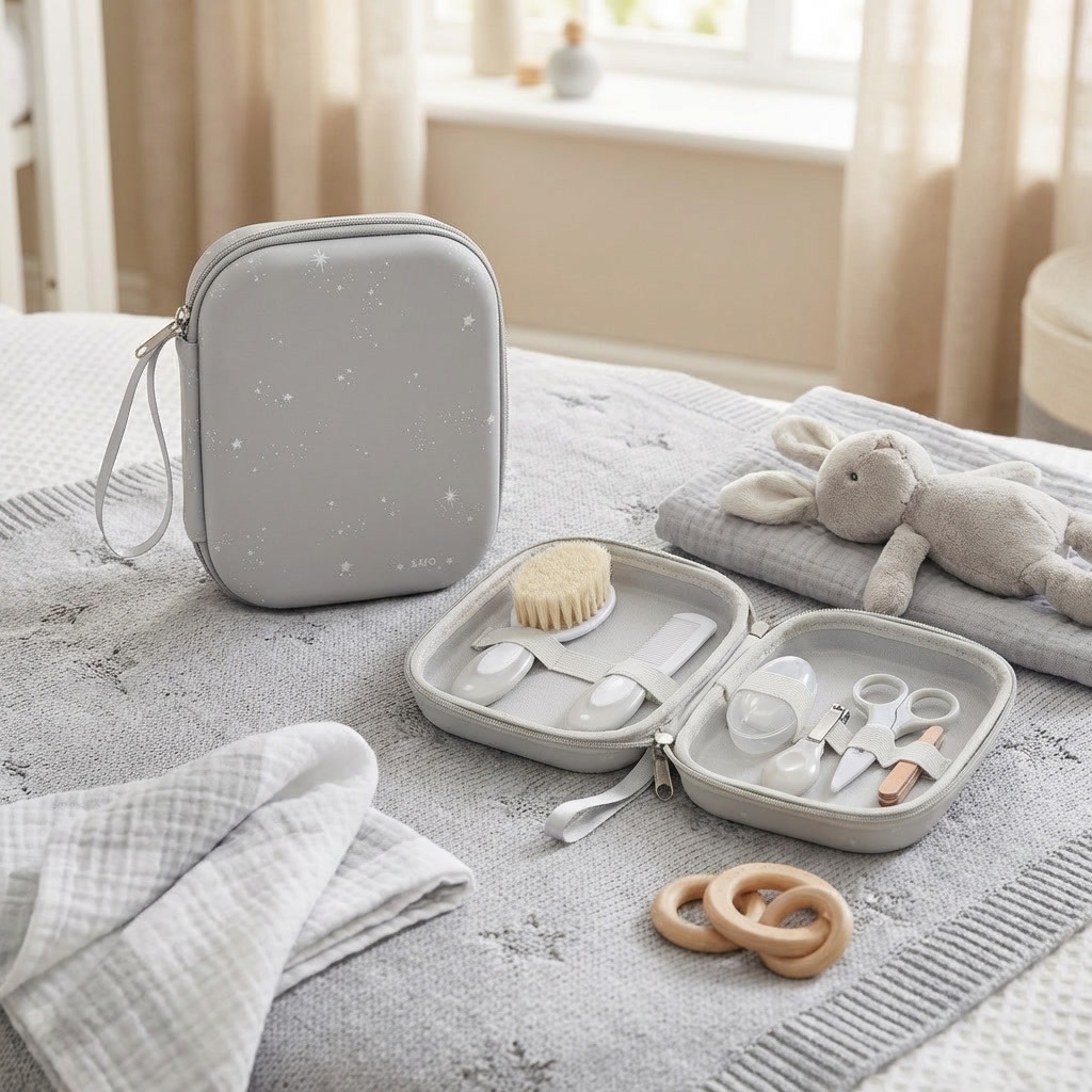 Todo lo que necesitas para el cuidado diario de tu bebé, en un práctico neceser rígido e impermeable con cremallera. Mantén cada accesorio ordenado y siempre a mano, tanto en casa como de viaje.