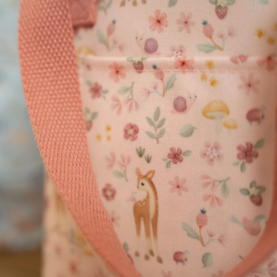 Bolsa térmica con estampado de jardín de las hadas, está confeccionada en lona resistente. El interior es aislante lo que te permitirá llevar la comida y bebidas bien refrigeradas manteniéndose en una temperatura óptima.