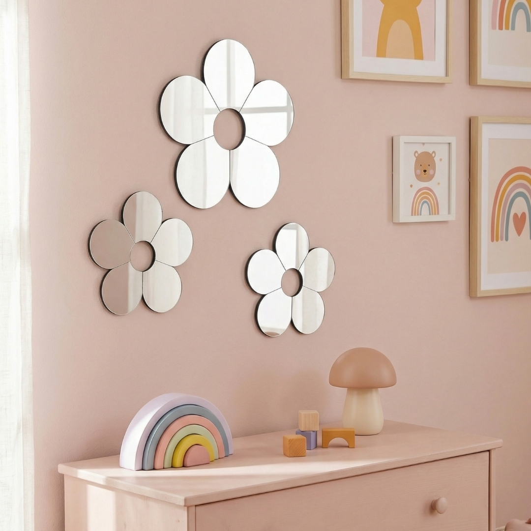 DECORACIÓNEspejo infantil Pack de 3 espejos en forma de flor