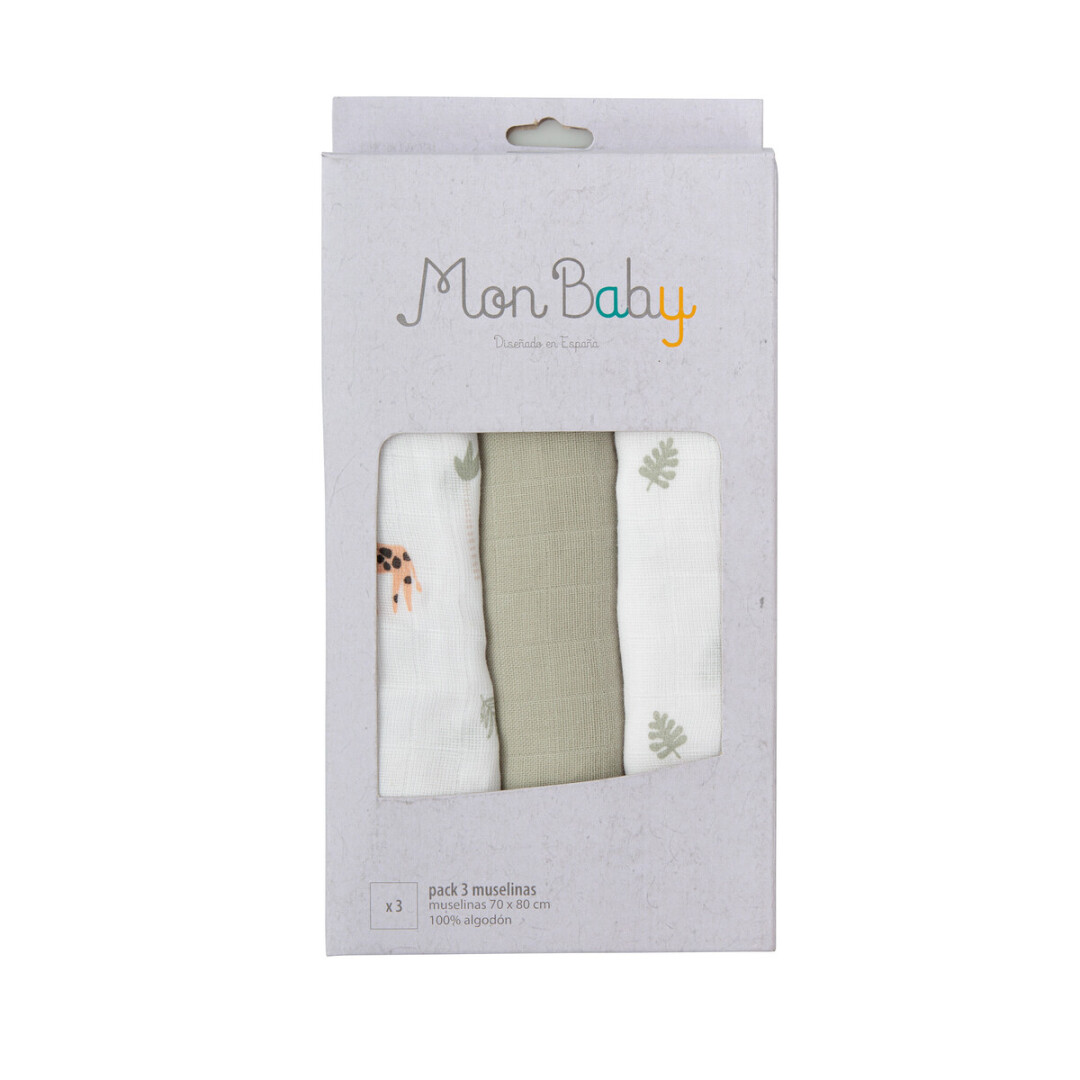 VERANOMuselinas para bebé Pack de 3 muselinas de algodón Safari