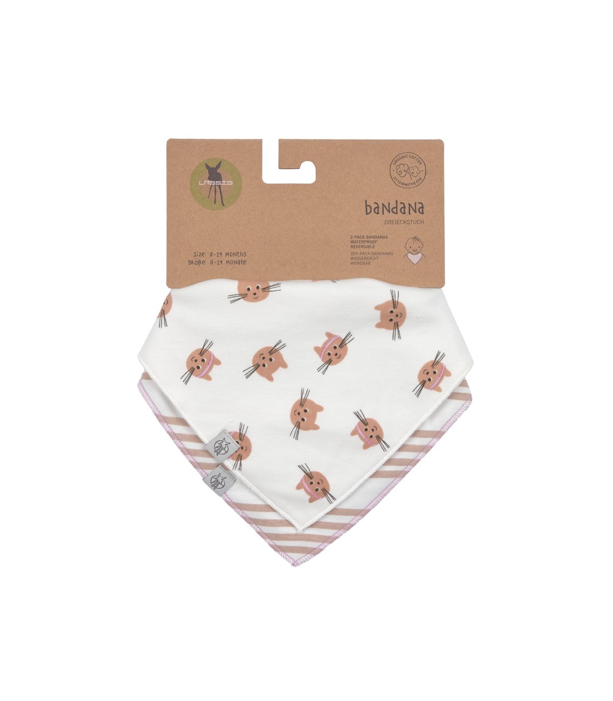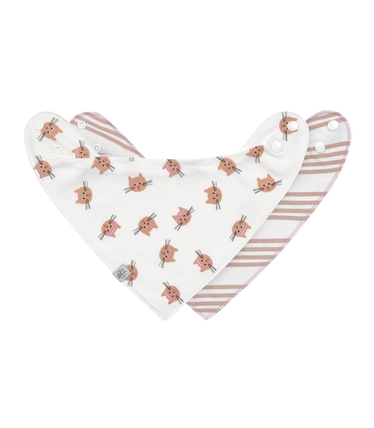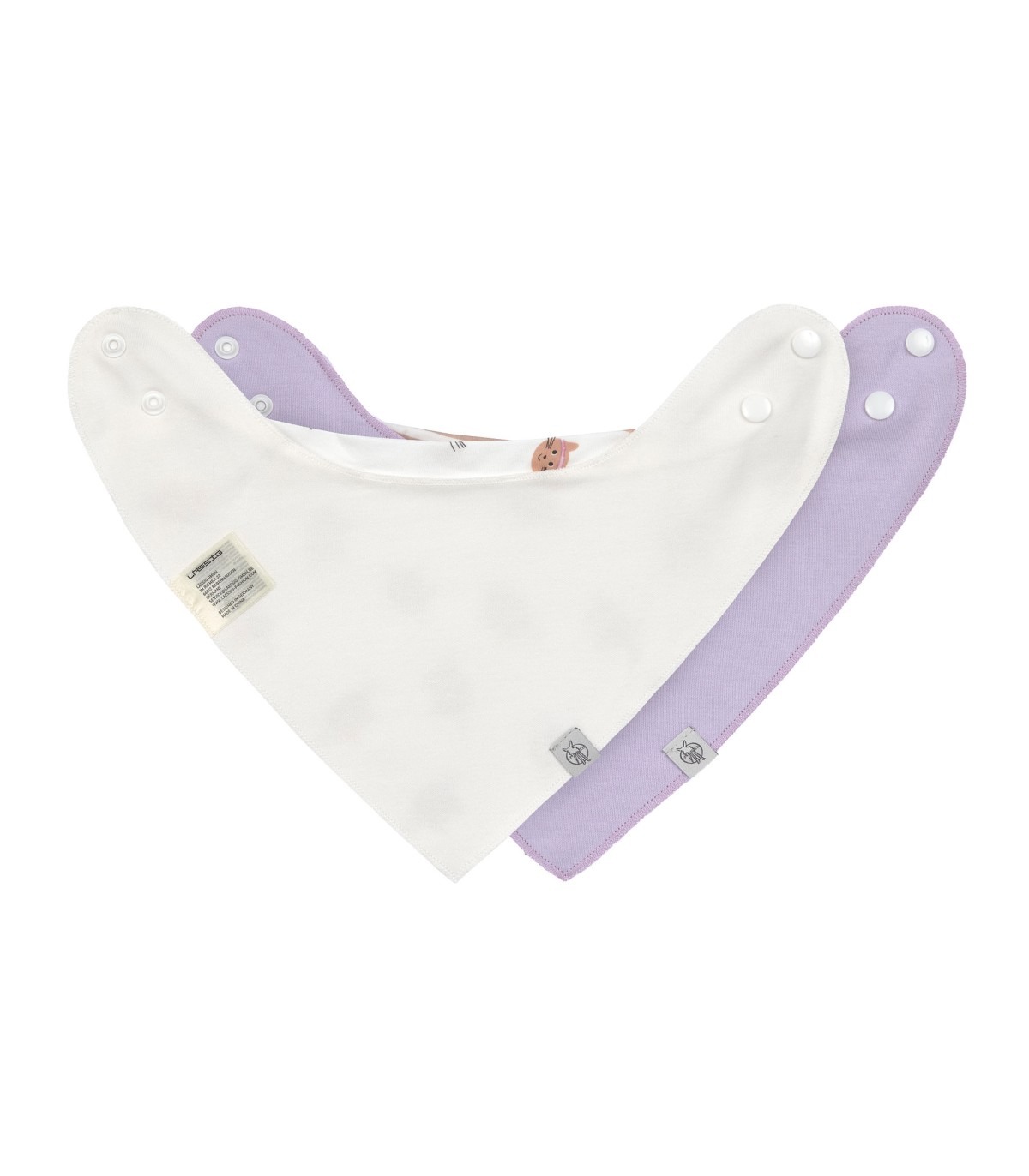 Pack de dos bandanas ideales para no dejar pasar la humedad y así mantener seca la ropa del bebé. Cierre con botón a presión.