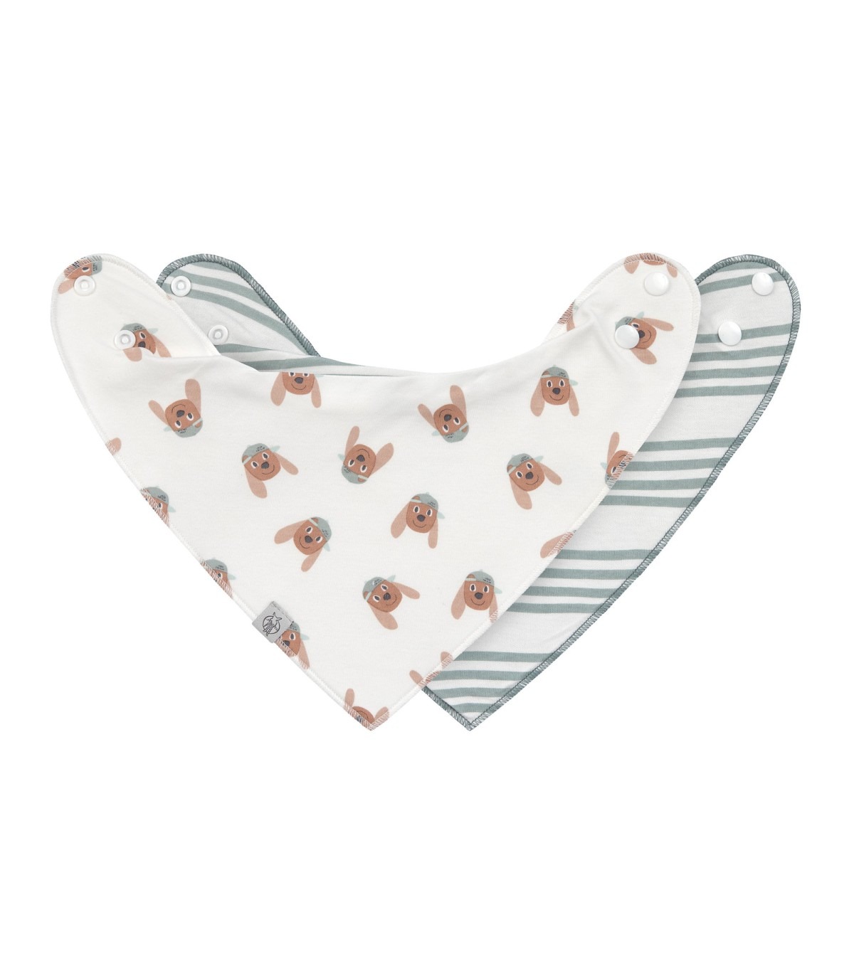 Pack de dos bandanas ideales para no dejar pasar la humedad y así mantener seca la ropa del bebé. Cierre con botón a presión.