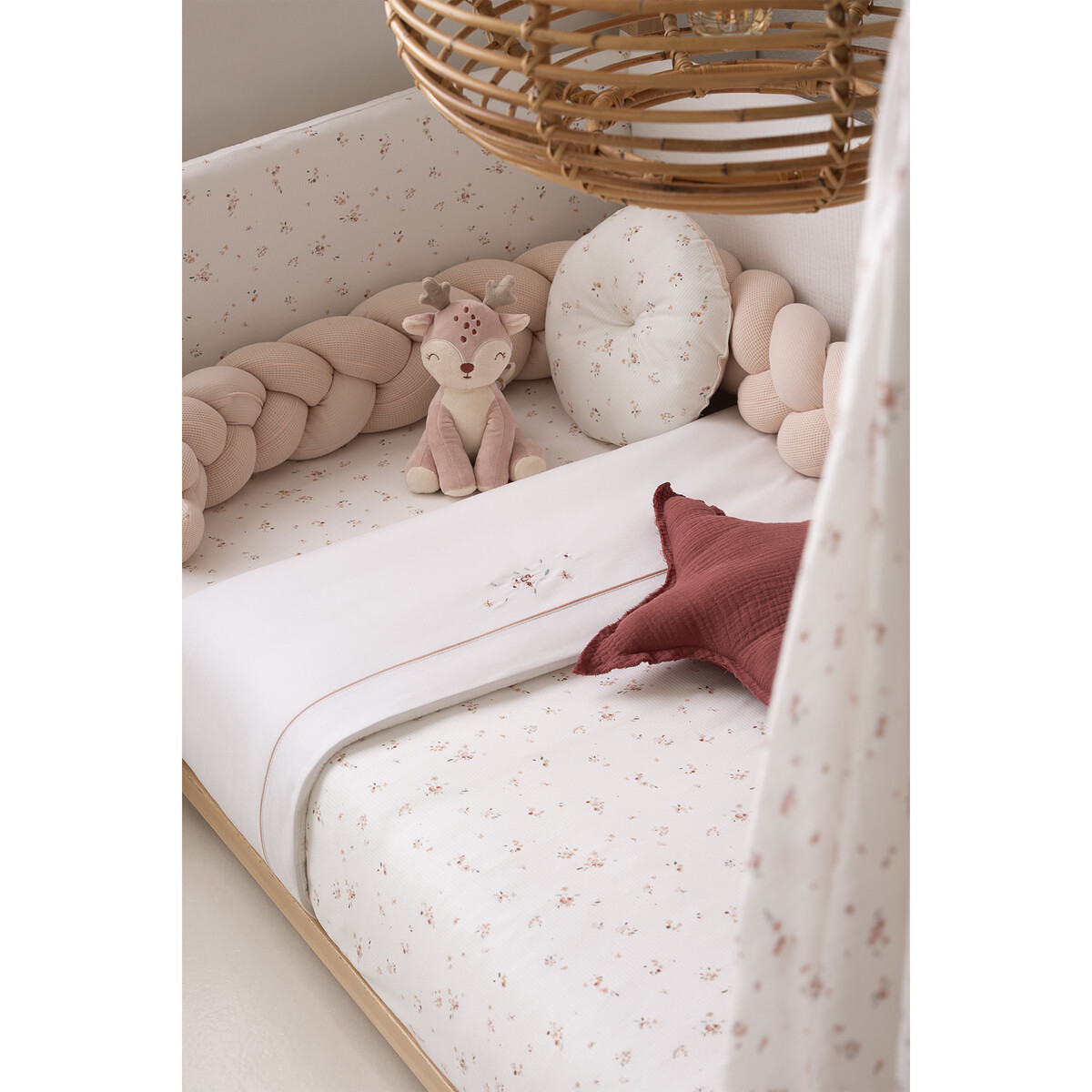 • Material: Confeccionado en tejidos de alta calidad, con un tacto extra suave pensado para la delicada piel del recién nacido. Composición exterior de algodón y relleno acolchado hipoalergénico.