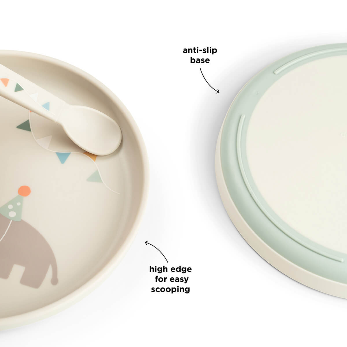 El Foodie plato redondo de Done by Deer es un accesorio infantil diseñado para niños a partir de 0 meses, que combina funcionalidad y diversión para hacer de cada comida una experiencia agradable y segura.