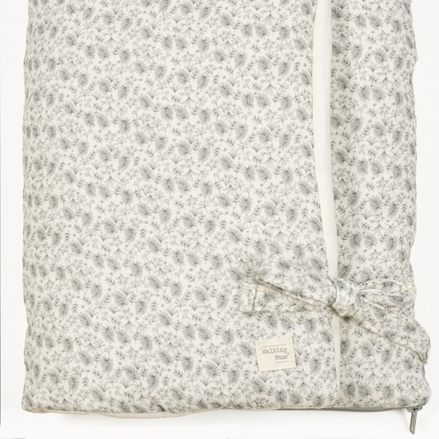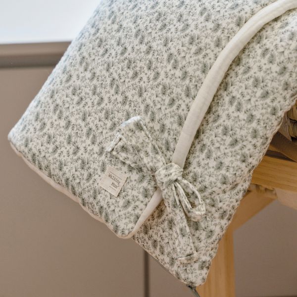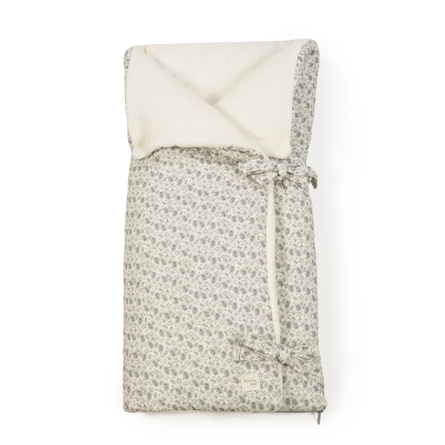 Confeccionado en muselina 100% algodón, ofrece una textura suave y transpirable, ideal para paseos en el capazo o momentos de descanso en la cuna.
