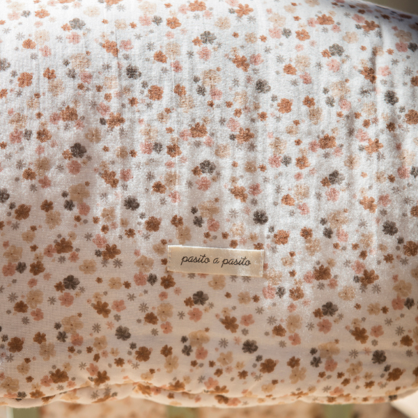 Saco arrullo con capucha confeccionado en tejido estampado de flores y bambula muy suave. Te resultará muy útil y versátil para los primeros días de tu bebé. Es un saco acolchado y acogedor que permitirá que el descanso sea más agradable.