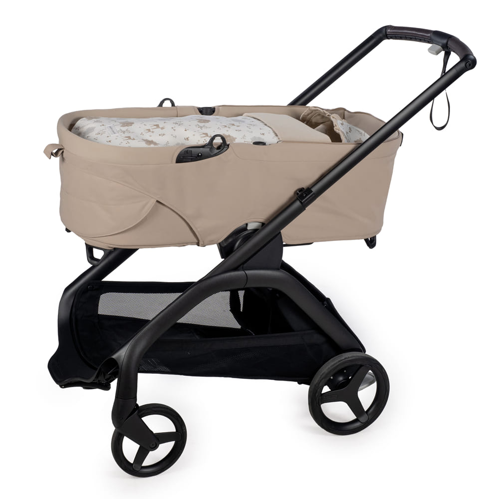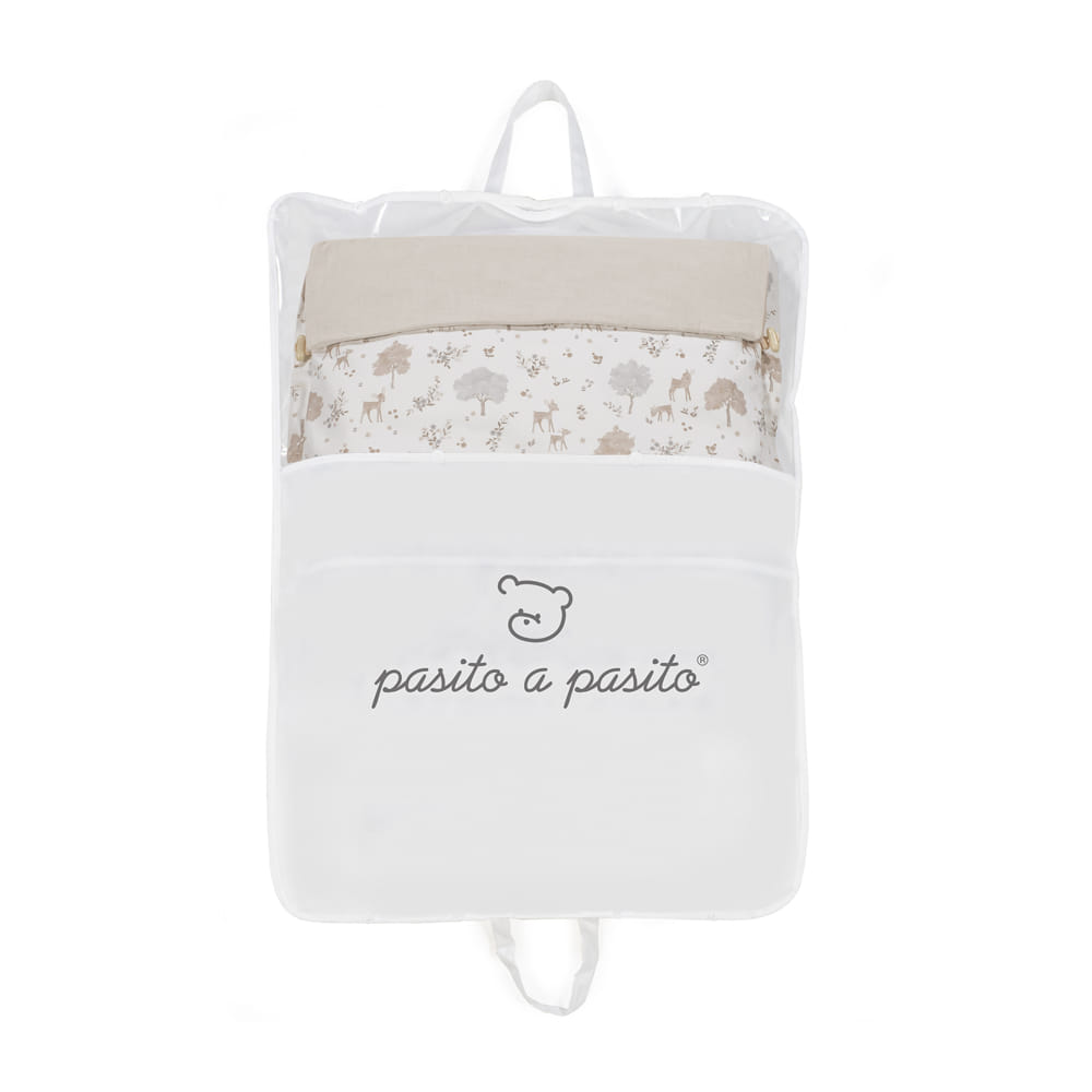 Al desenfundar la base, se convierte en una colchoneta ligera para la silla de paseo. Su diseño crea un nido acogedor que mantiene al bebé arropado y protegido en días de brisa.