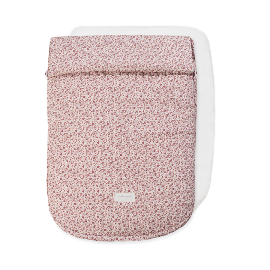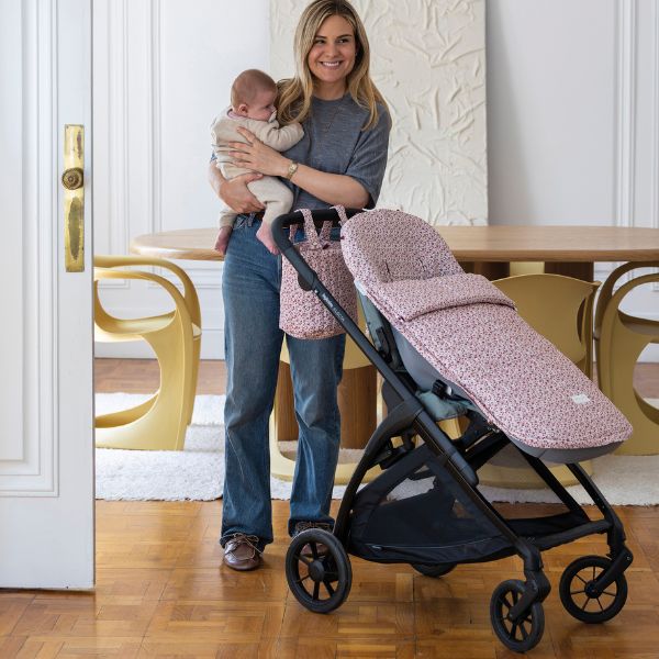 El saco silla entretiempo Cherry de Pasito a Pasito está confeccionado en tejido de algodón muy suave, ideal para cubrir la silla de paseo y mantener al bebé cómodo y protegido en días de brisa.