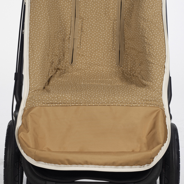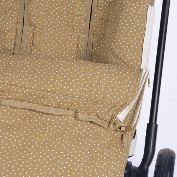 Funda con estampado de topitos, ideal para cubrir la base de la silla de paseo. Incorpora un saco para cubrir a tu bebé durante los meses de primavera y otoño. Es universal, por lo que se adapta a la mayoría de sillas del mercado. El respaldo está fabricado en tejido de malla para evitar la sudoración excesiva del bebé y aislar la humedad. Cuenta con una base en el reposapiés en poliéster para poder facilitar la limpieza. Además dispone de de varias aperturas (ojales) y ajustes para adaptar el saco a la silla  y hacer que el paseo de tu bebé sea más seguro y cómodo.