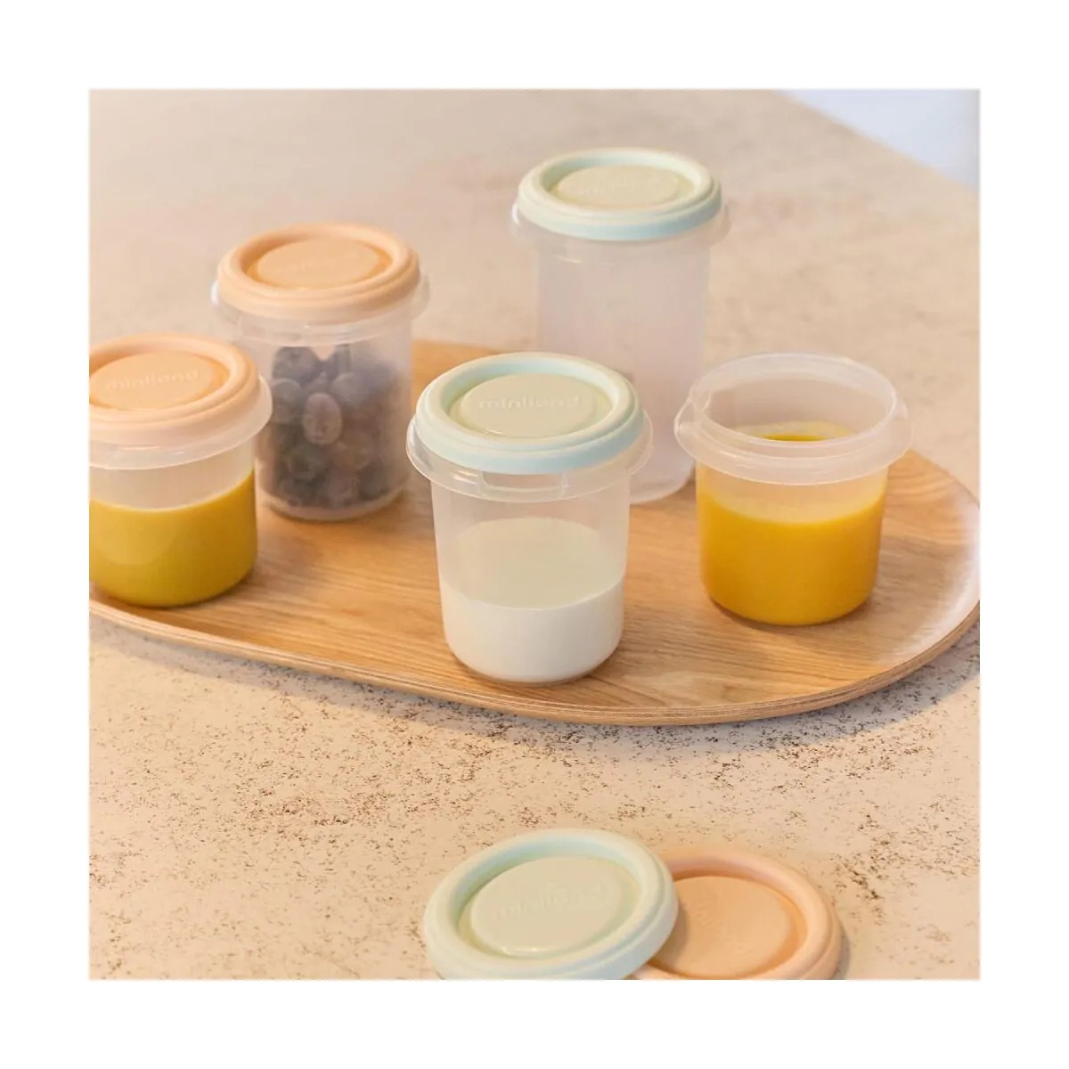 El Set de 6 Recipientes Dreamland de Miniland es la solución más completa y versátil para organizar la alimentación de tu bebé, permitiéndote conservar desde la leche materna hasta los primeros purés y alimentos sólidos.