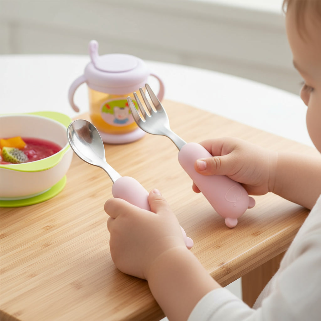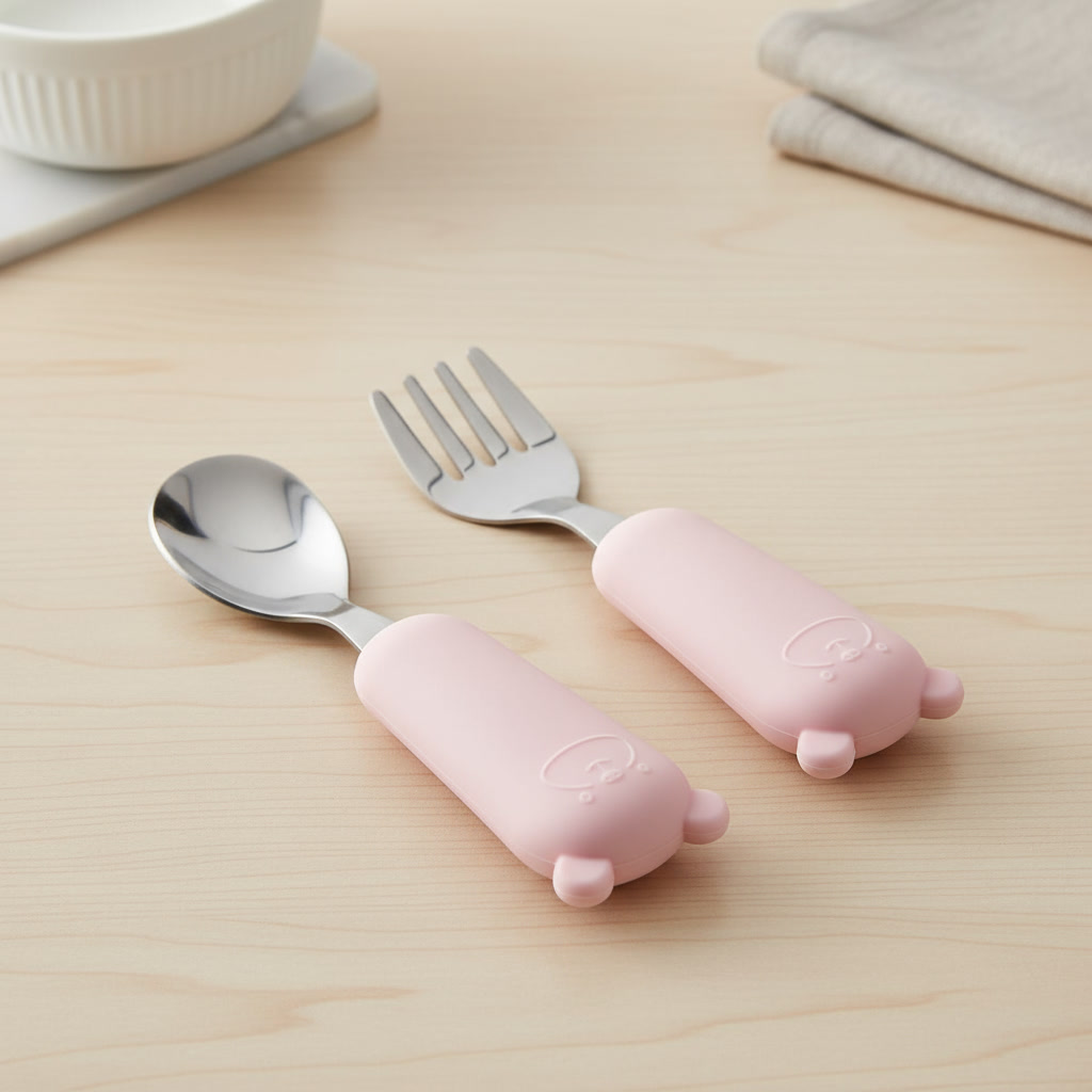El set de cuchara y tenedor Yumestá diseñado para ayudar a tu pequeño a explorar la comida de forma divertida y segura.