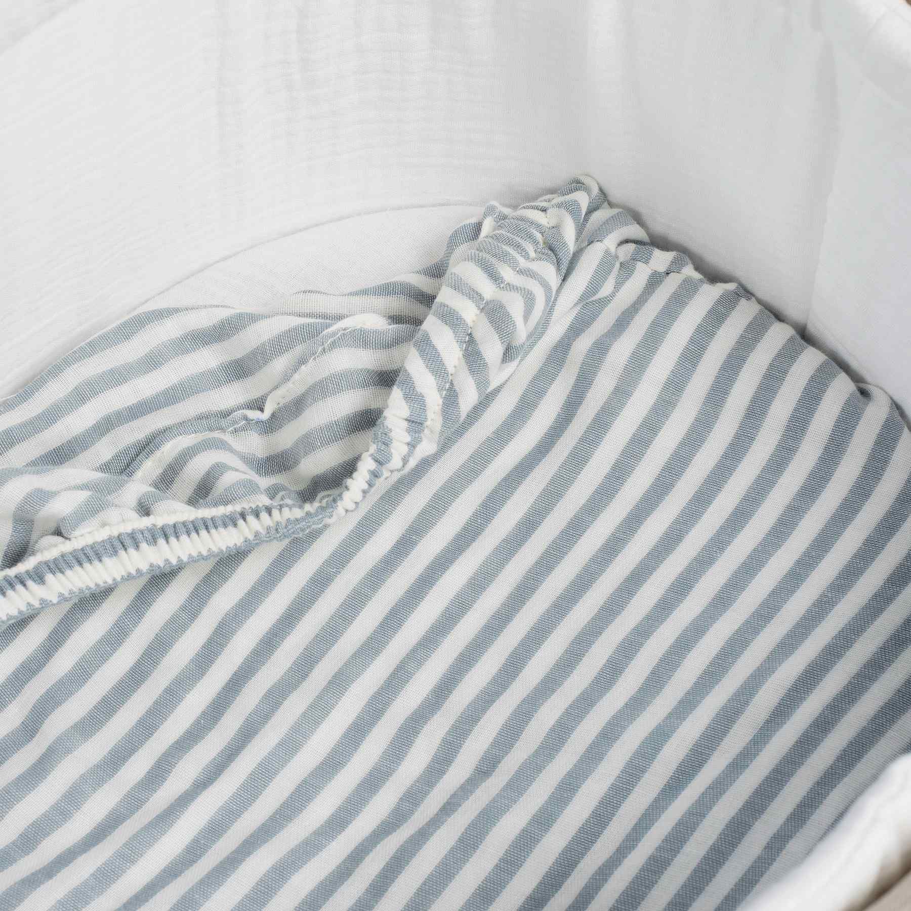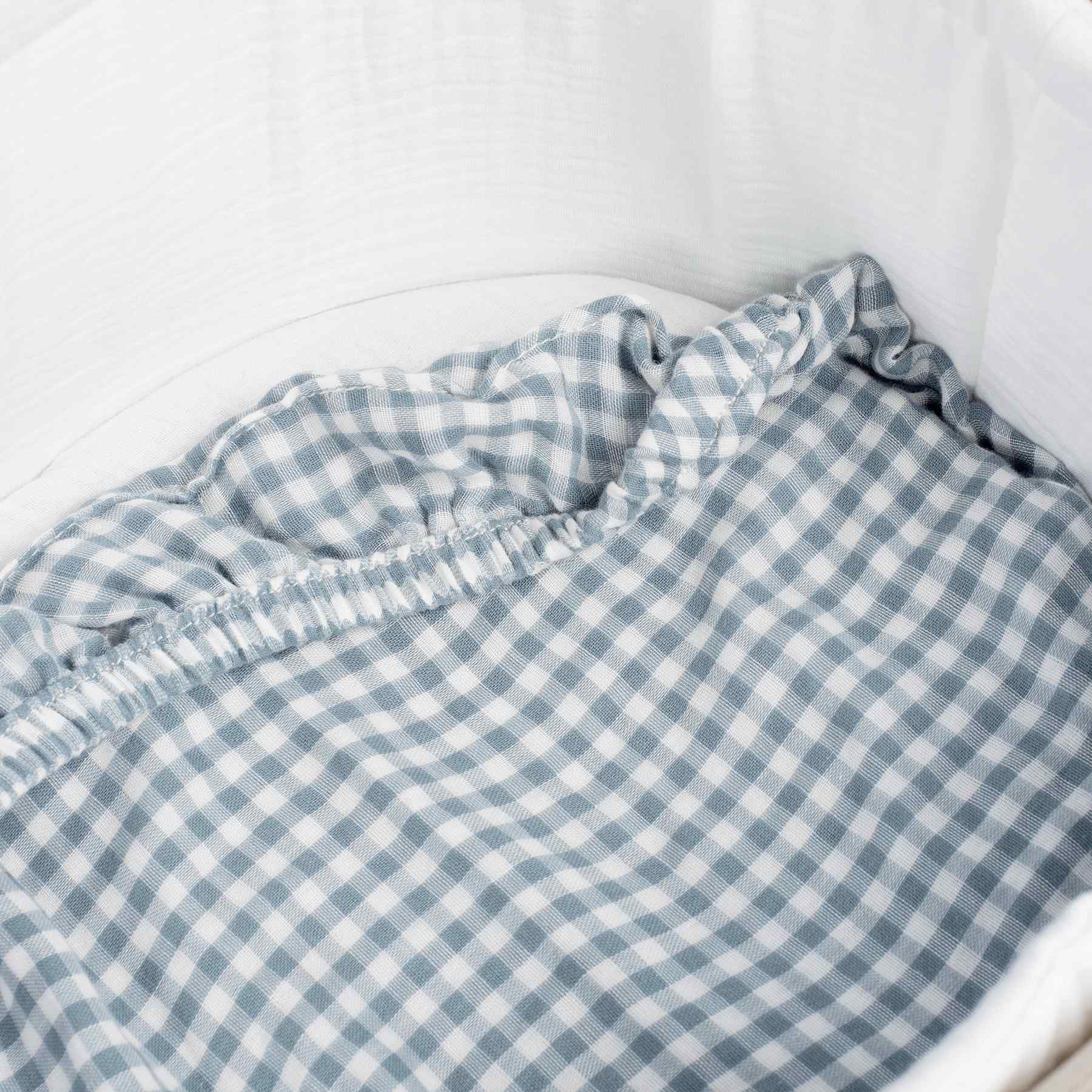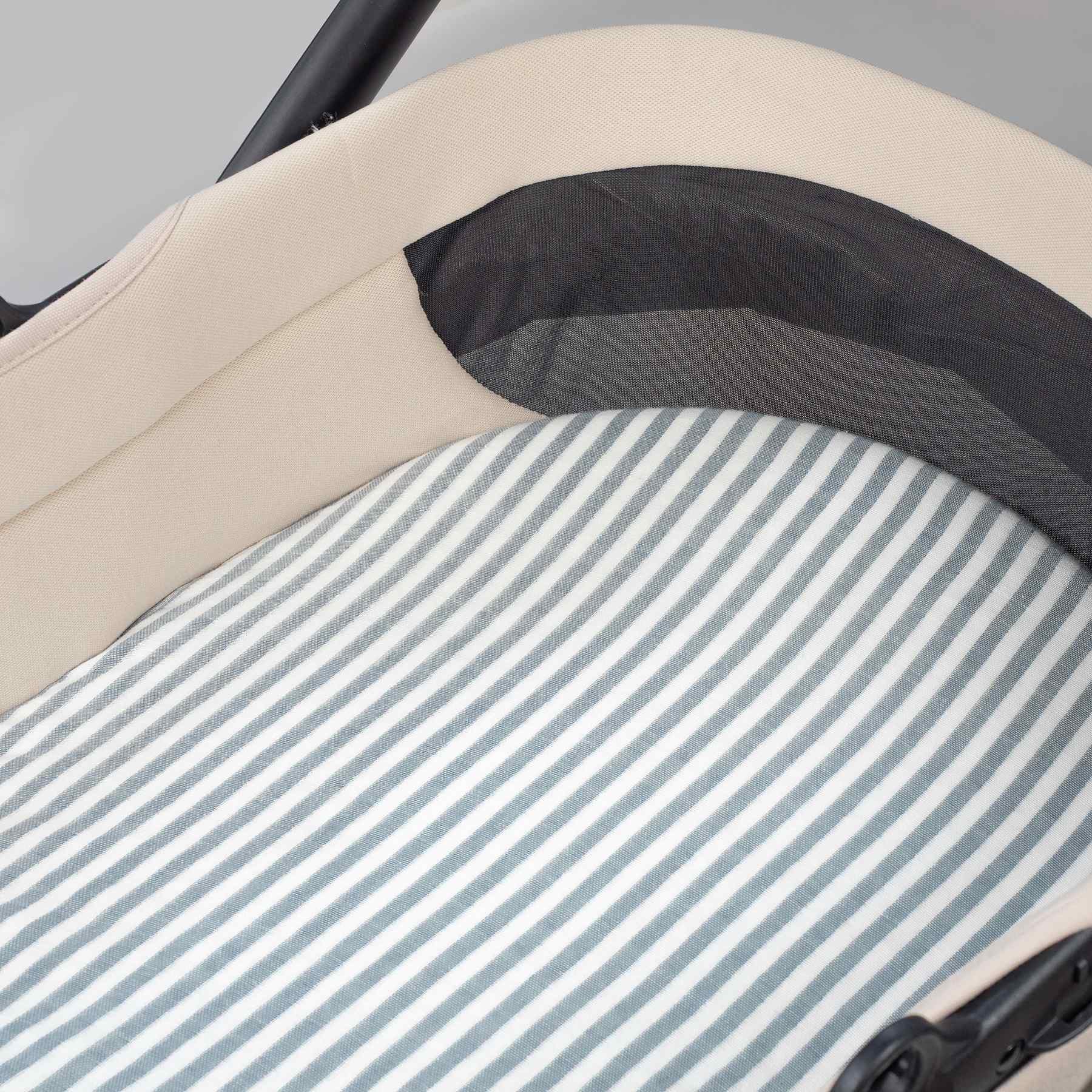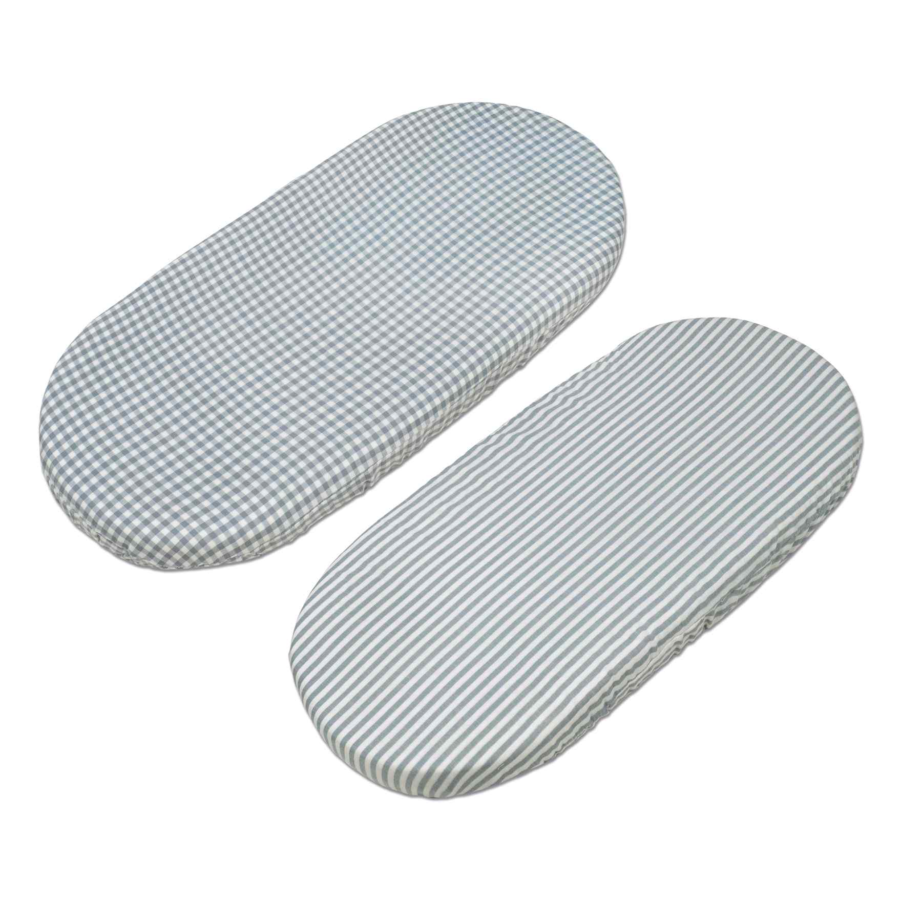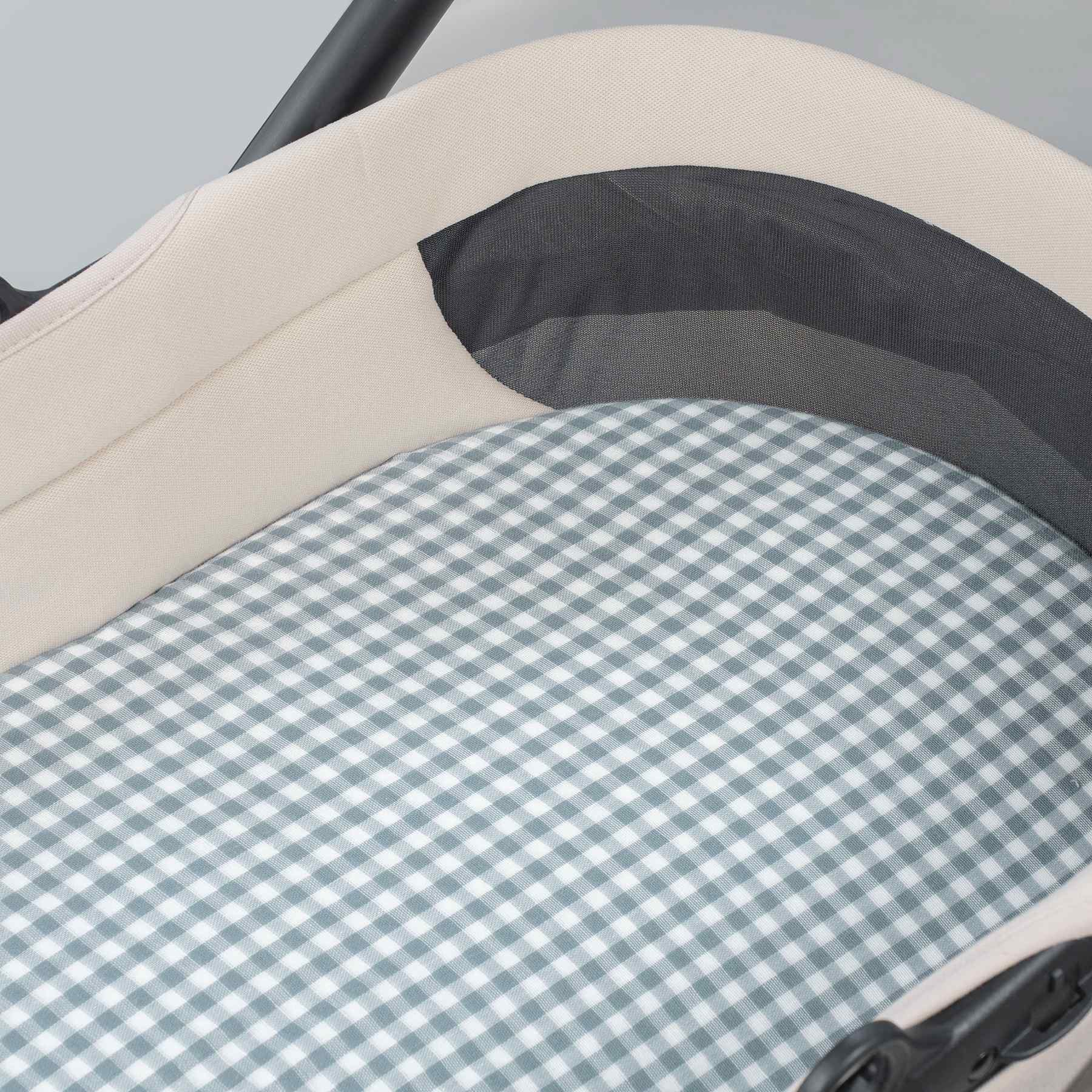 PASEO BEBÉSábanas carrito Set de dos sábanas bajeras para cuco Praliné Vichy/rayas matcha