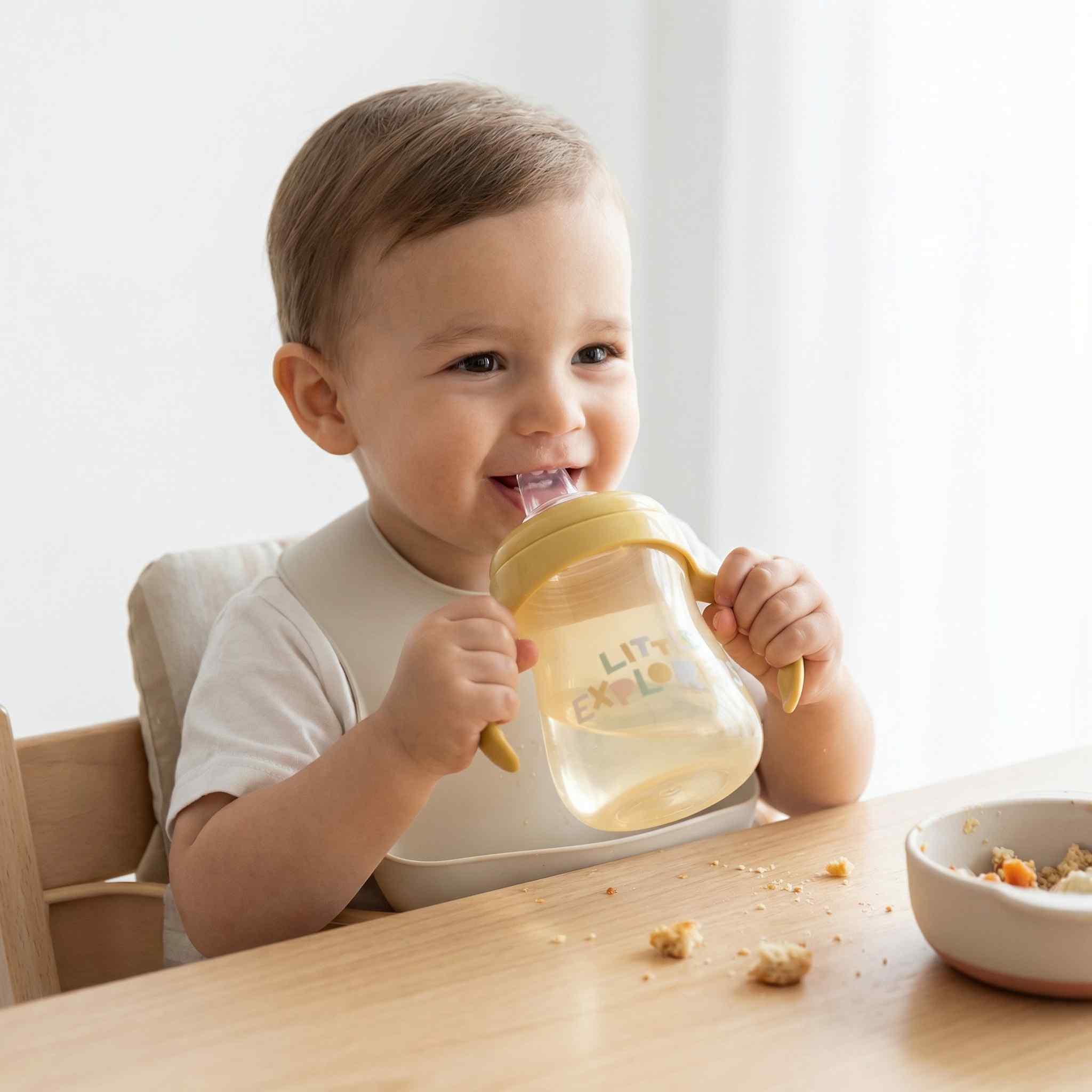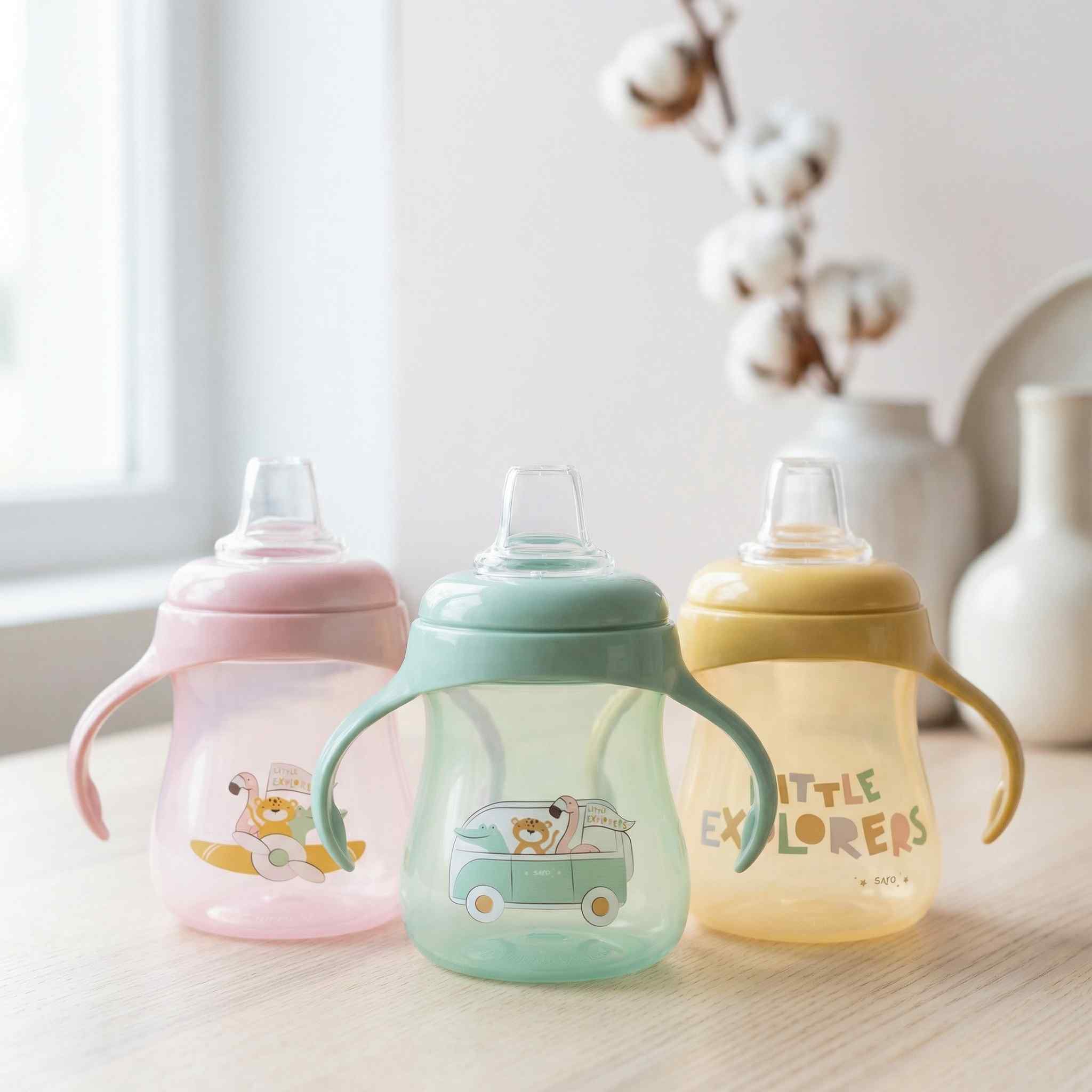 Esta práctica taza de aprendizaje con asas, será el complemento perfecto que hará más sencilla la transición del biberón al vaso. Su boquilla de silicona anticólicos es muy suave al contacto con las encías y no las daña, resultando cómoda incluso durante la dentición.