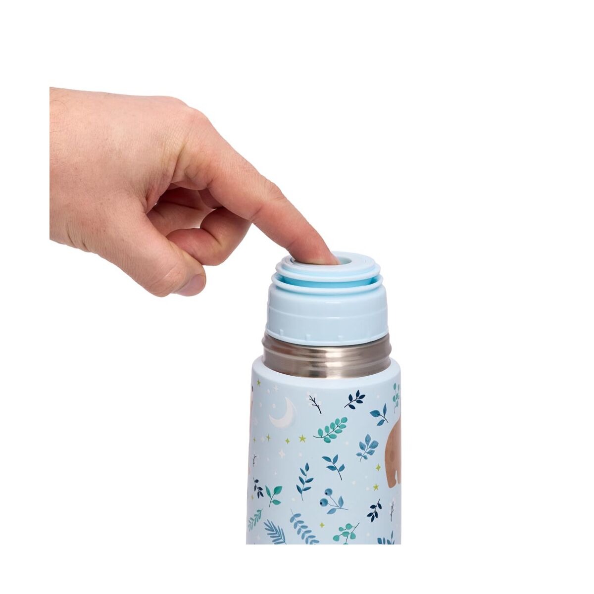 - Funcionalidad: Incluye una válvula de apertura por pulsación “click-on” que permite verter el líquido sin desenroscar el tapón, evitando la pérdida de temperatura.